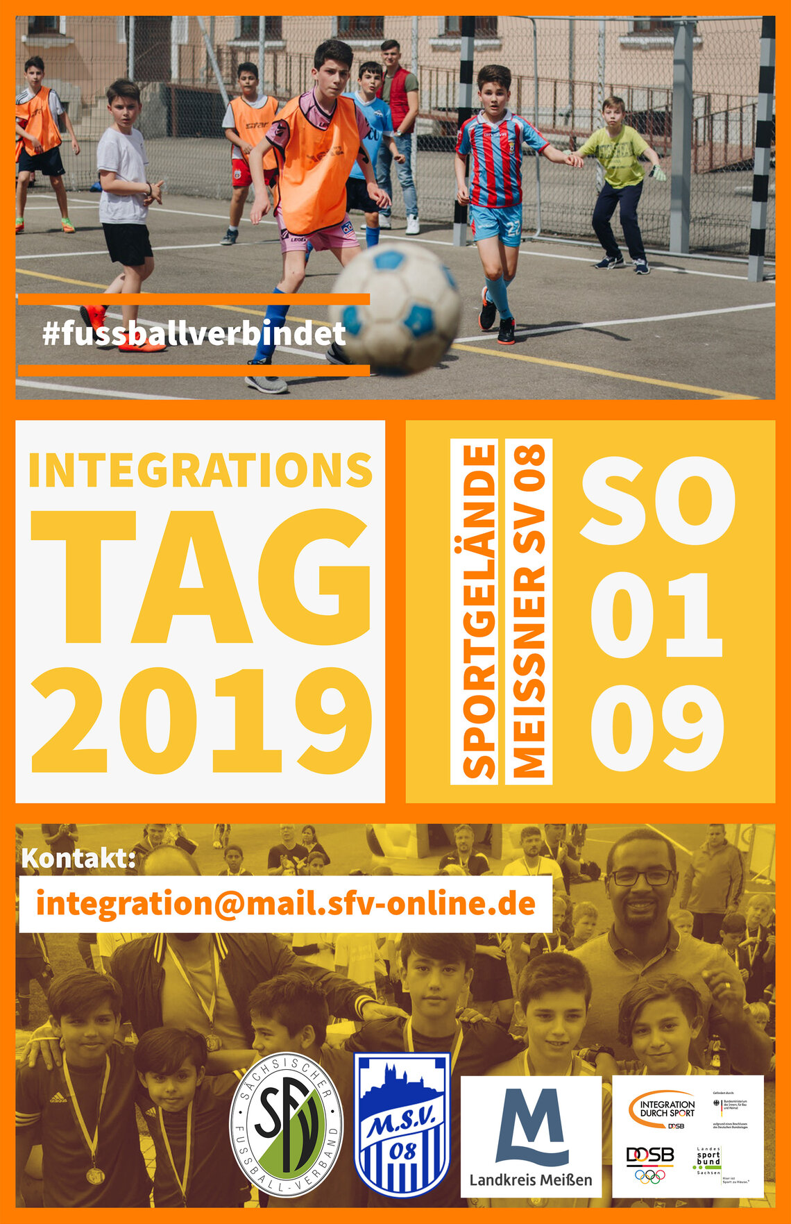 Mit dem 2. SFV-Integrationstag am 1. September in Meißen ( ab 10 Uhr) knüpft der SFV an das Programm "Integration durch Sport" an und veranstaltet gemeinsam mit dem Landessportbund Sachsen, dem Kreissportbund Meißen, dem Landkreis Meißen und dem Meißner SV ein Fußballturnier mit integrativen Charakter. Dafür können sich Vereine, Schulen und andere Organisationen ab sofort anmelden. Teilnehmen können Kinder zwischen 7 und 13 Jahren und mit den Einstufungen U 9, U 11 und U 13 ist das Turnier in drei Altersklassen eingeteilt. Gekickt wird auf drei Soccercourts im Modus "4 gegen 4" und einzelne Spielerinnen und Spieler sind ausdrücklich erwünscht. Ein abwechslungsreiches Rahmenprogramm mit Hüpfburg, Kreativangeboten und Geschicklichkeitsspielen lässt bei den Kindern und Zuschauern keinesfalls Langeweile aufkommen. Alle Informationen zum Turnier findet ihr in unserer Einladung: