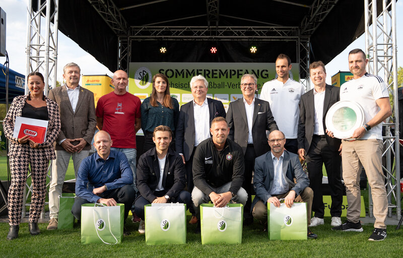 Auf dem Gelände der Sportschule „Egidius Braun“ begrüßte SFV-Präsident bekannte Persönlichkeiten aus Politik, Sport und Wirtschaft. Staatministerin Dr. Christiane Schenderlein, Staatsminister Armin Schuster, Fußballgrößen wie Jürgen Croy oder Marco Rose, Vereinsvertreter wie Johann Plenge, Roland Frötschner oder SGD-Präsident Ronny Rehn sowie viele weitere Unterstützer des sächsischen Fußballs folgten Winklers Einladung.