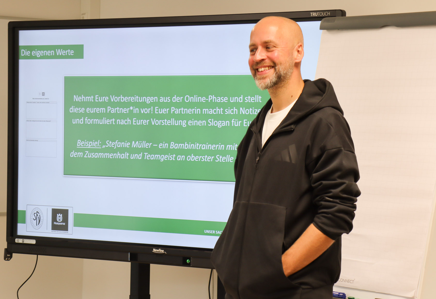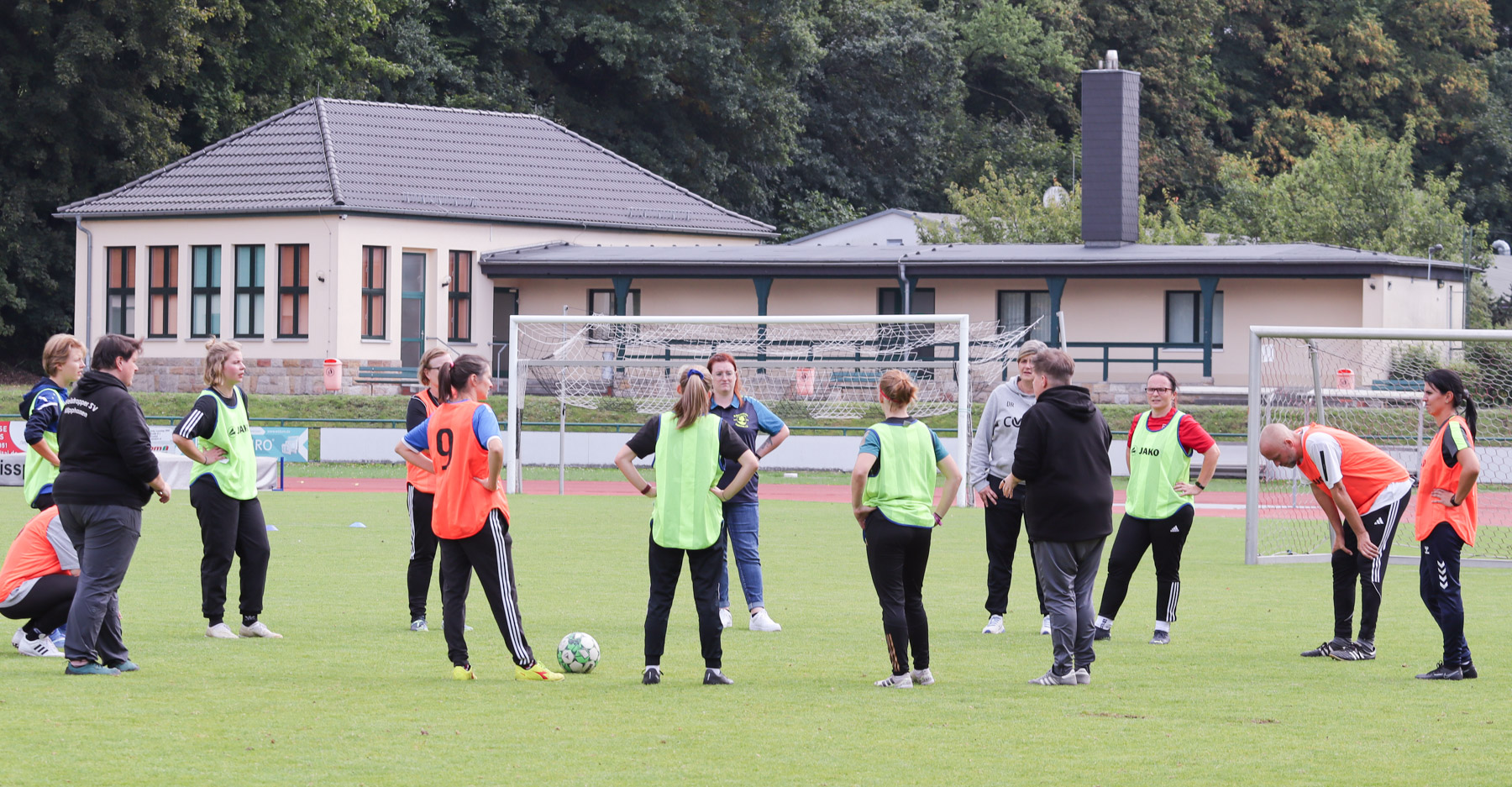 Empfangen wurden die Mädels von Valentin Herit vom KVFSOE und mit Thekla Funke und Johannes Hanf übernahmen zwei SFV-Referenten die Praxis und Theorie. Die Lehrgangsinhalte, wie beispielsweise altersgerechte Trainingsgestaltung, langfristiger Leistungsaufbau, Fußballfitness, Wertebildung und die Entwicklung der eigenen Trainerinnenpersönlichkeit wurden bei angenehmer Atmosphäre sowohl durch theoretischen Input als auch durch praxisnahe Gruppenarbeiten transportiert. Das Feedback der Trainerinnen war insgesamt sehr positiv. Insbesondere lobten sie die angenehme und positive Atmosphäre während des Lehrgangs und waren dankbar für die Möglichkeit diesen in einem geschützten Raum nur unter weiblichen Teilnehmerinnen durchlaufen zu können.