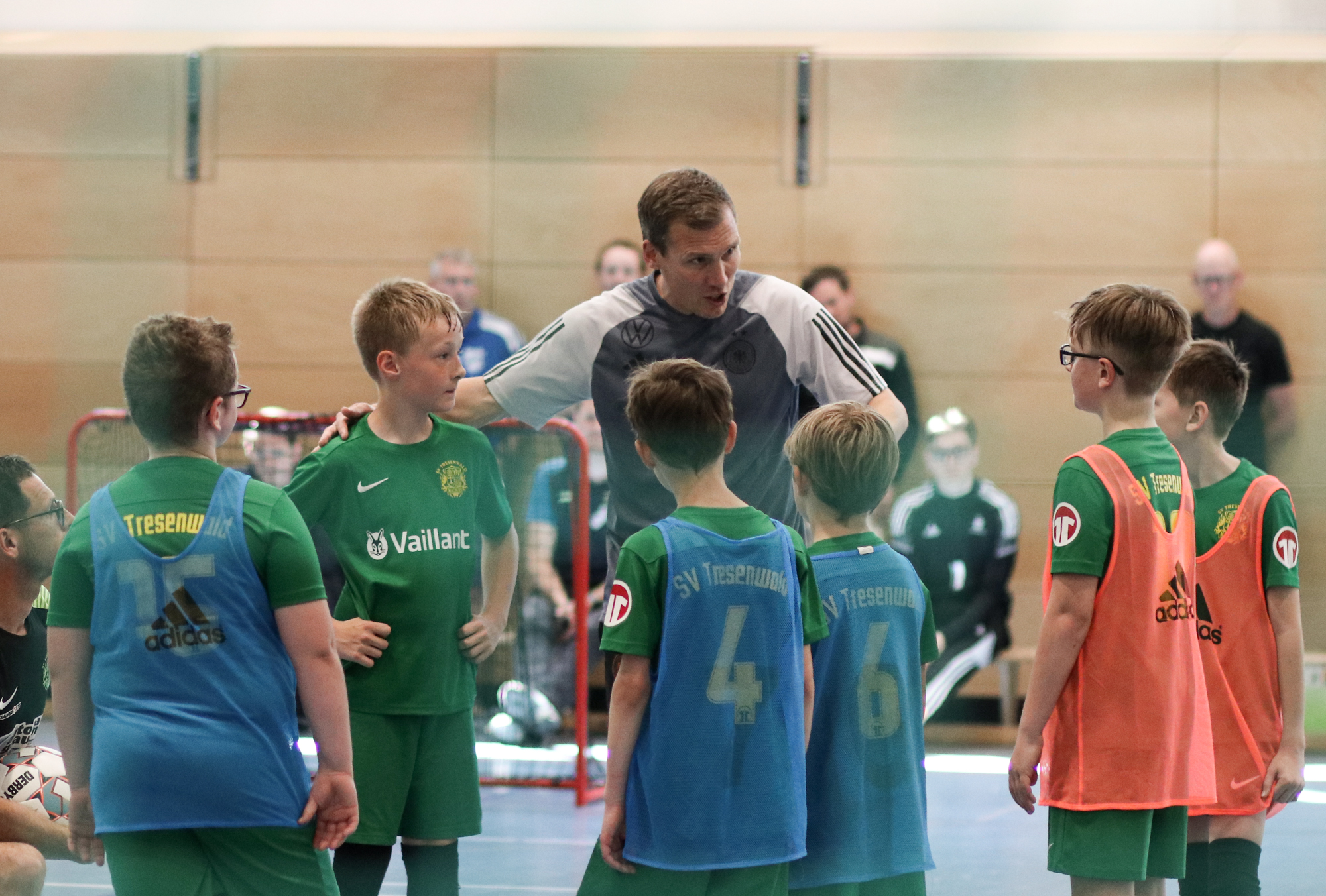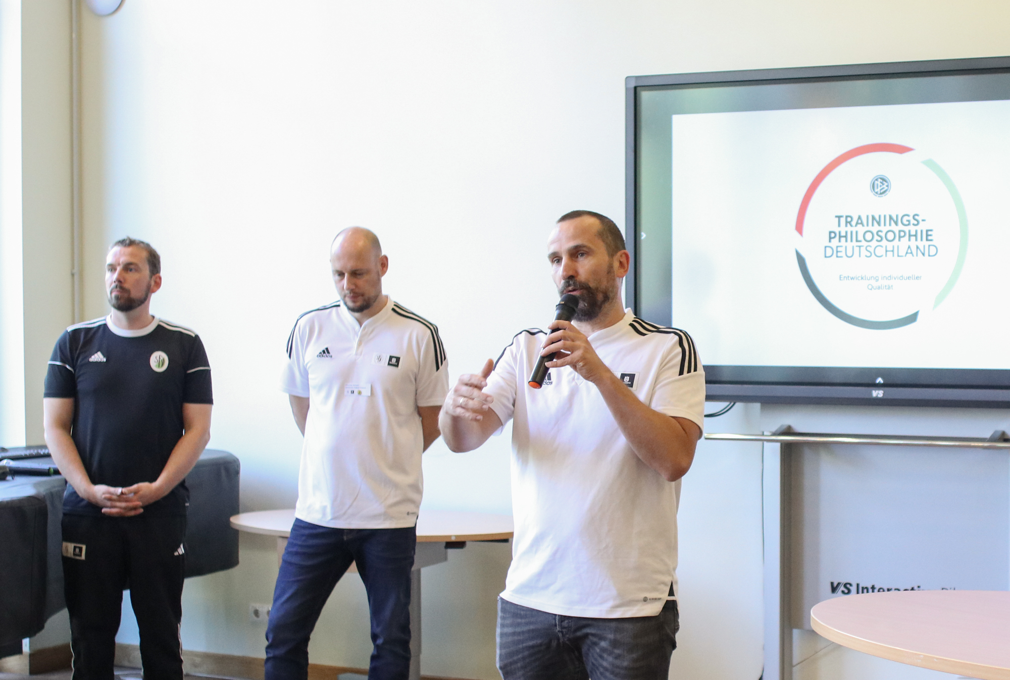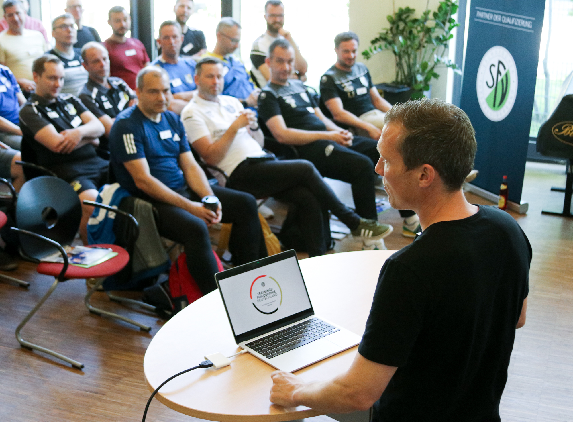 Das SFV Qualifizierungs-Team um Marcus Danz und Alexander Schunke hat mit der Fortbildung mehr als 130 Trainerinnen und Trainer aus dem gesamten Freistaat erreicht und - um im Fußballjargon zu bleiben - abgeliefert. Mit dem DFB-Direktor für Nachwuchs, Training und Entwicklung, Hannes Wolf, konnte der Ausschuss einen Experten gewinnen, der am Vormittag auch die letzten Zweifel unter den Teilnehmenden ausräumte. Zum Einstieg lieferte Wolf mit seinem Impulsvortrag zur „Trainingsphilosophie Deutschland“ zahlreiche Argumente, die für die neuen Spielformen im Kinderfußball sprechen. Der DFB-Direktor überzeugte mit seiner leidenschaftlichen Präsentation und transportierte wertvolle Tipps für die Trainingsorganisation. Mit der U 11 vom SV Tresenwald-Machern präsentierte Wolf den Teilnehmern im Anschluss noch eine Praxiseinheit.