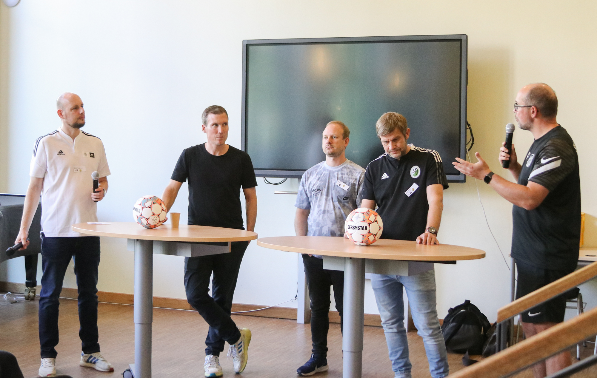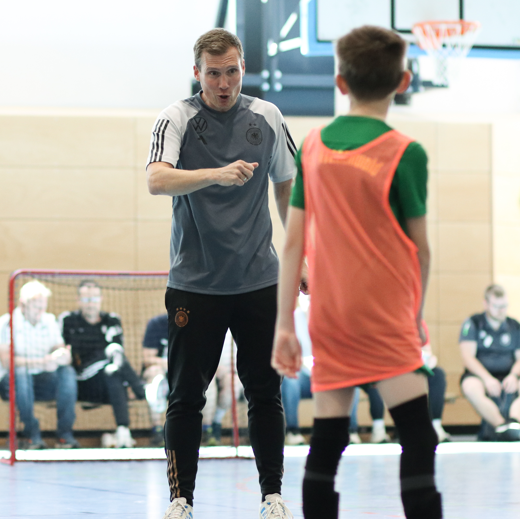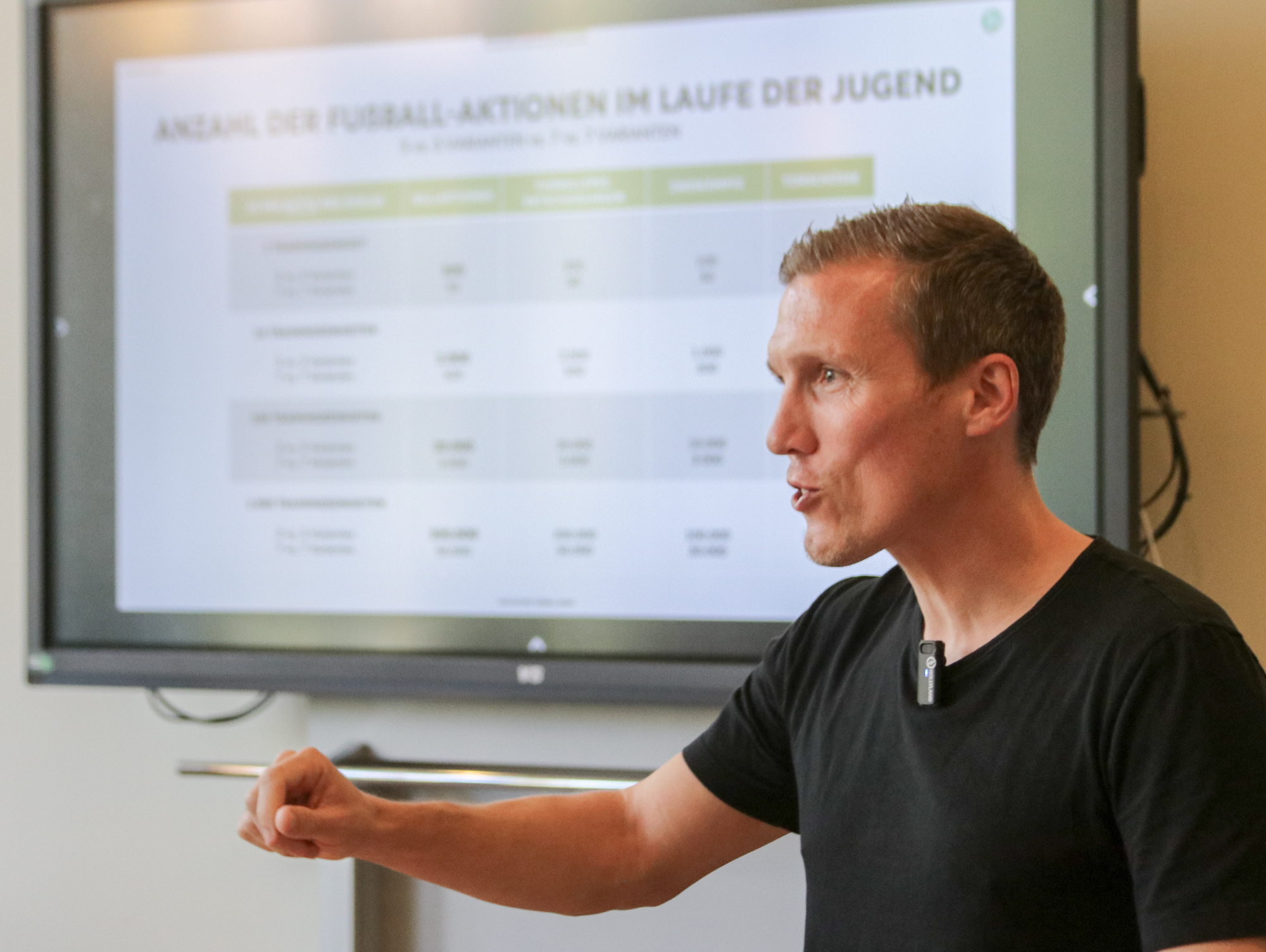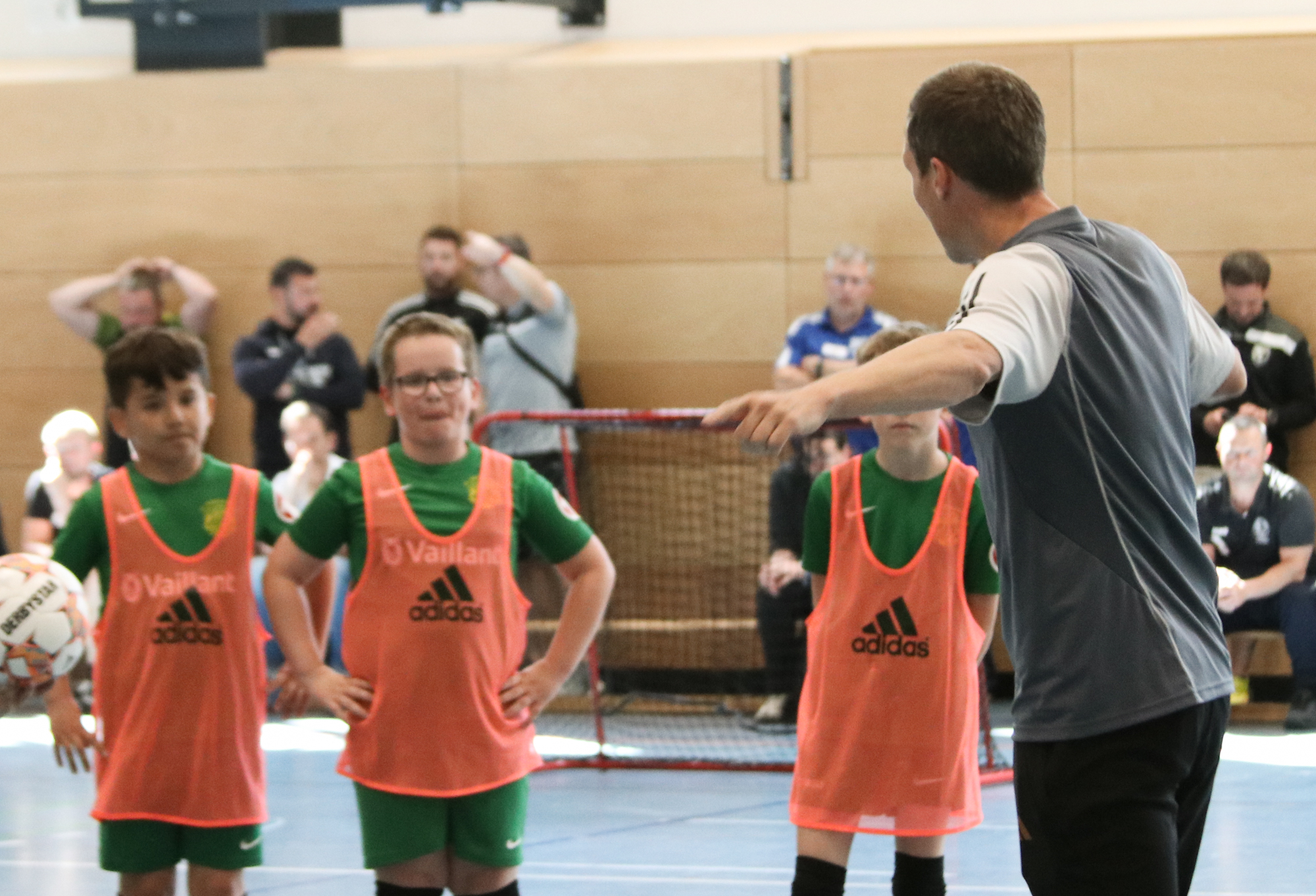 Das SFV Qualifizierungs-Team um Marcus Danz und Alexander Schunke hat mit der Fortbildung mehr als 130 Trainerinnen und Trainer aus dem gesamten Freistaat erreicht und - um im Fußballjargon zu bleiben - abgeliefert. Mit dem DFB-Direktor für Nachwuchs, Training und Entwicklung, Hannes Wolf, konnte der Ausschuss einen Experten gewinnen, der am Vormittag auch die letzten Zweifel unter den Teilnehmenden ausräumte. Zum Einstieg lieferte Wolf mit seinem Impulsvortrag zur „Trainingsphilosophie Deutschland“ zahlreiche Argumente, die für die neuen Spielformen im Kinderfußball sprechen. Der DFB-Direktor überzeugte mit seiner leidenschaftlichen Präsentation und transportierte wertvolle Tipps für die Trainingsorganisation. Mit der U 11 vom SV Tresenwald-Machern präsentierte Wolf den Teilnehmern im Anschluss noch eine Praxiseinheit.