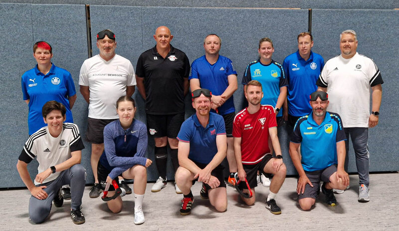 Unter diesen Aspekten kamen 11 Teilnehmende nach Leipzig und stellten sich dem Thema. Neben intensiven theoretischen Lerneinheiten, kam auch die Praxis nicht zu kurz. Unter anderem fand auch eine Einheit zum Thema Blindenfußball statt. Mit tatkräftiger Unterstützung von Britt und Falko, zwei erfahrenen Blindenfußballerinnen/-trainern des 1. FC Lok Leipzig, bekamen die Teilnehmenden einen tiefen Einblick, in die Komplexität dieser Sportart.