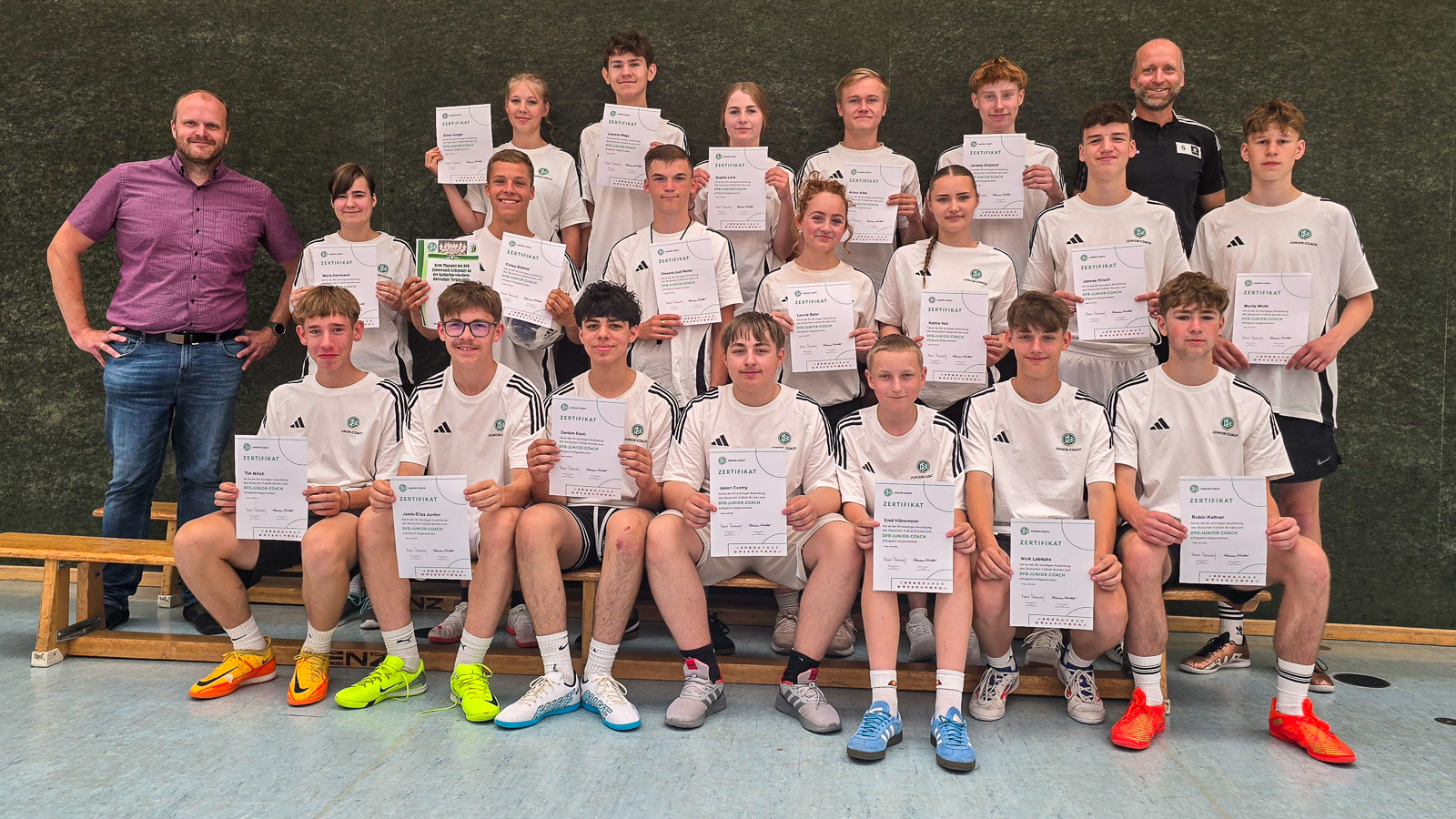 Im Anschluss erhalten die frisch gebackenen Junior-Coaches in den kommenden Herbstferien die Möglichkeit, in entsprechenden Lehrgängen ihre DFB C-Lizenz zu absolvieren. Damit können die Jugendlichen eine Trainertätigkeit auf Kreisebene in allen Altersklassen übernehmen. Alle neuen Junior Coaches können sich hier darüber informieren.