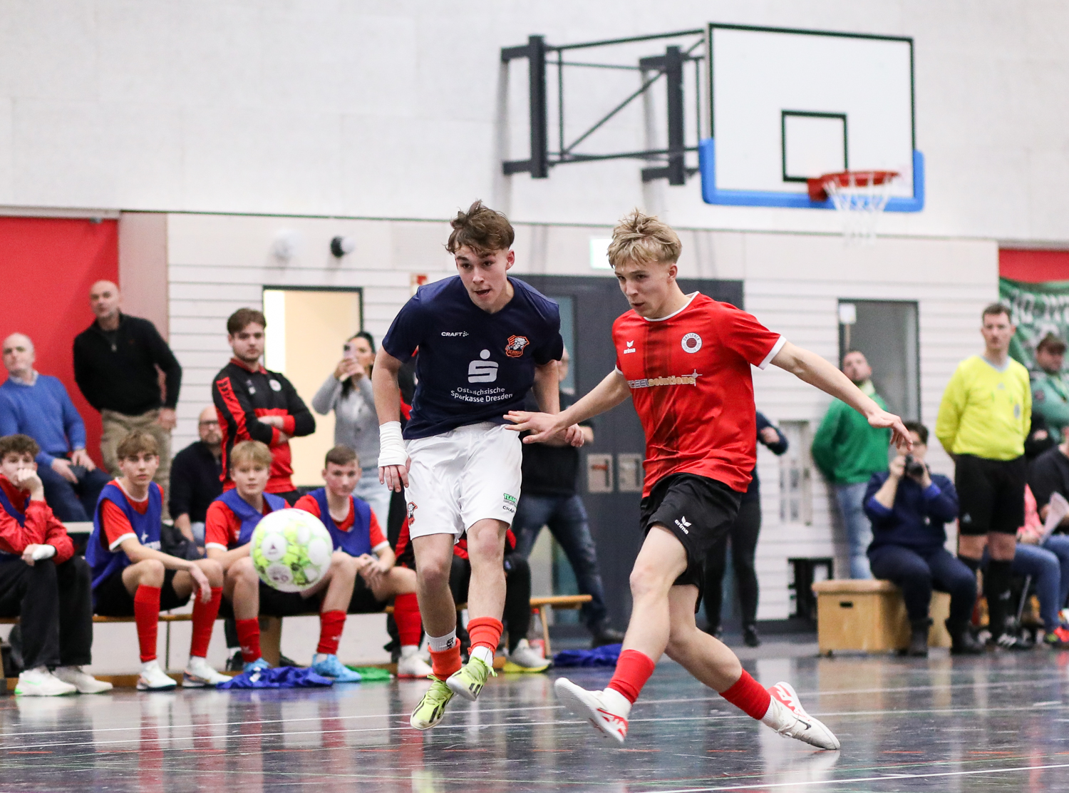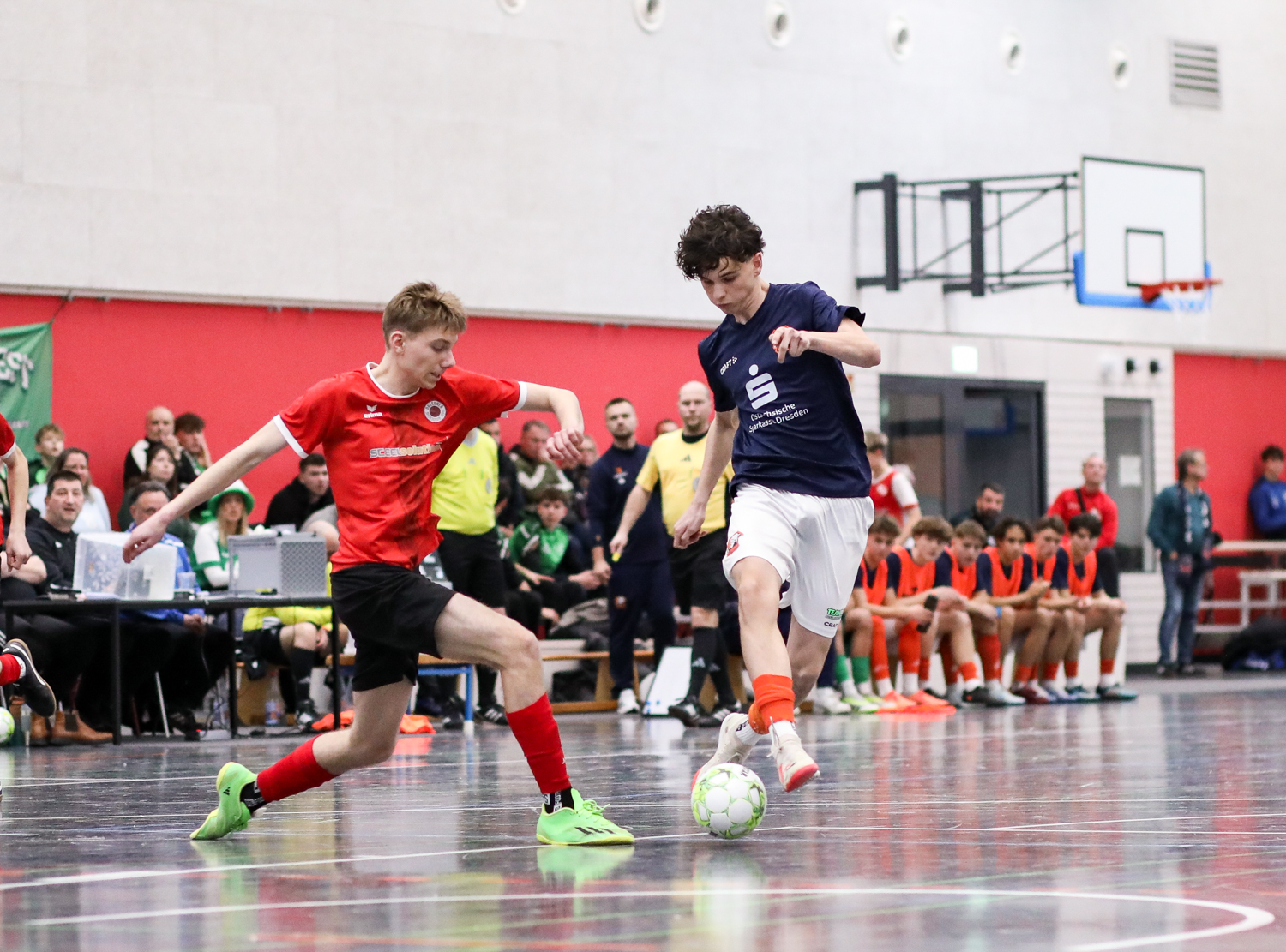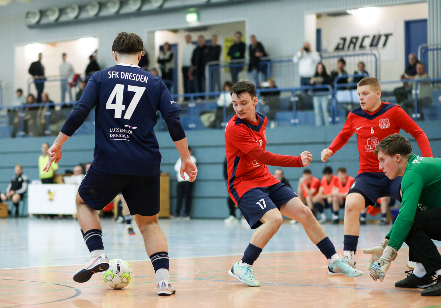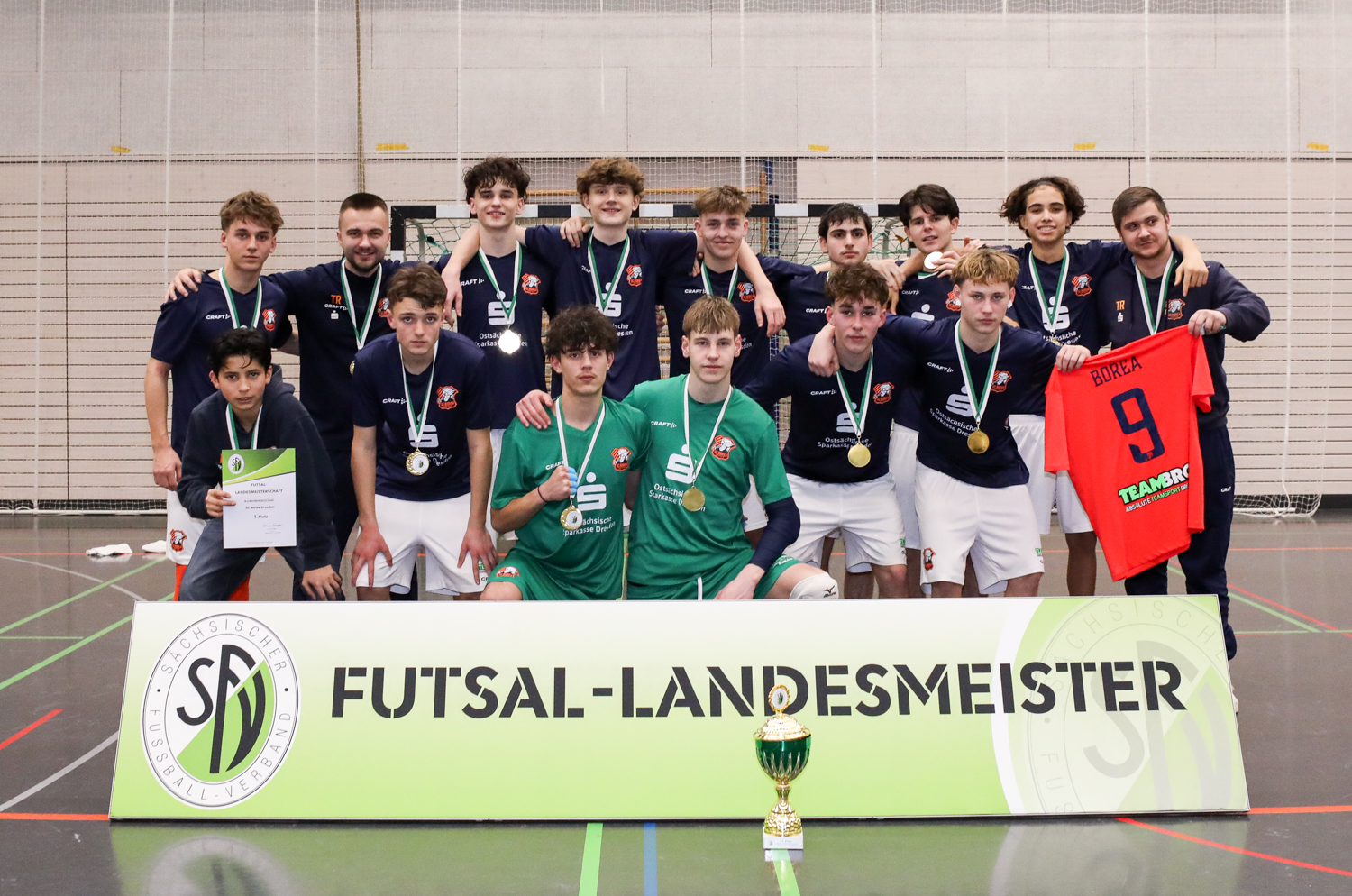Die Futsal-Landesmeisterschaften der Junioren sind entschieden. Vier Endrunden liefen am letzten Wochenende in Bischofswerda, Großenhain, Dresden und Mittweida. Für den Jugendausschuss um den Vorsitzenden Jens Vöckler ein intensives Wochenende mit ausgezeichneten Gastgebern, gut gefüllten Hallen und phasenweise richtig guten Futsal. Dank gilt vor allem den Ausrichtern, Schiedsrichtern, Turnierleitern und SFV-Präsidiumsmitgliedern, die bei den Siegerehrungen die Pokale an die neuen Futsal-Landesmeister übergaben.