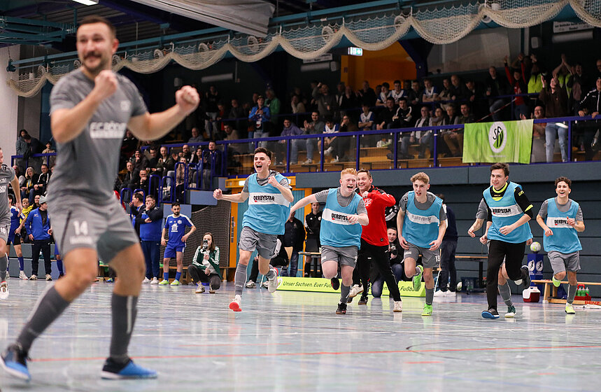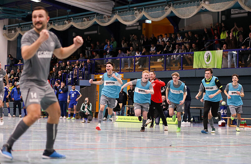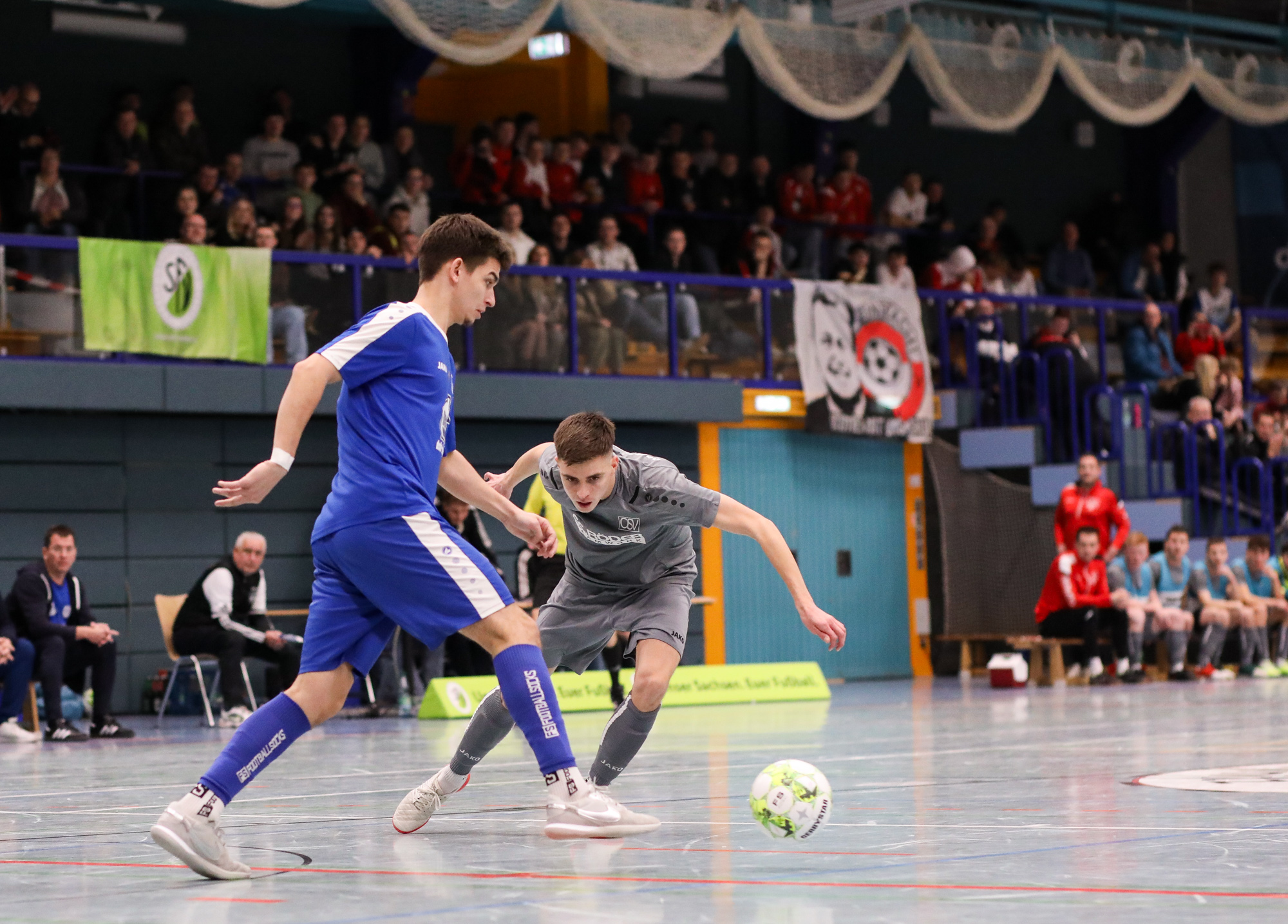 Beste Futsal-Atmosphäre herrschte am Samstagnachmittag im HOT-Sportzentrum in Hohenstein-Ernstthal. Rund 300 Zuschauerinnen und Zuschauer verfolgten die Endrunde der Futsal-Landesmeisterschaft der Herren, die erneut für spannende Spiele und viele Emotionen sorgte. Ein großer Dank gilt dem Ausrichter Oberlungwitzer SV sowie HOT 05 für die gelungene Organisation und die Versorgung der Teams und Fans.