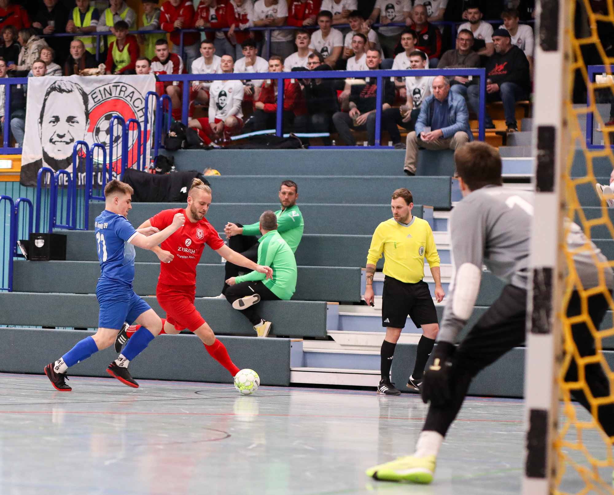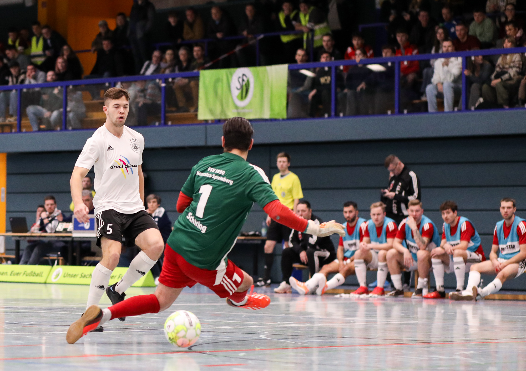 Das Finale entwickelte sich anschließend zu einem echten Nervenkrimi. Bis kurz vor Schluss führten die Gastgeber mit 1:0, ehe Mykola Pastukh 35 Sekunden vor dem Ende seine Mannschaft ins Entscheidungsschießen rettete. Ex Futsal-Torwart Marco Pohl wurde dabei zum entscheidenden Faktor und parierte zwei Lindenauer Sechsmeter.