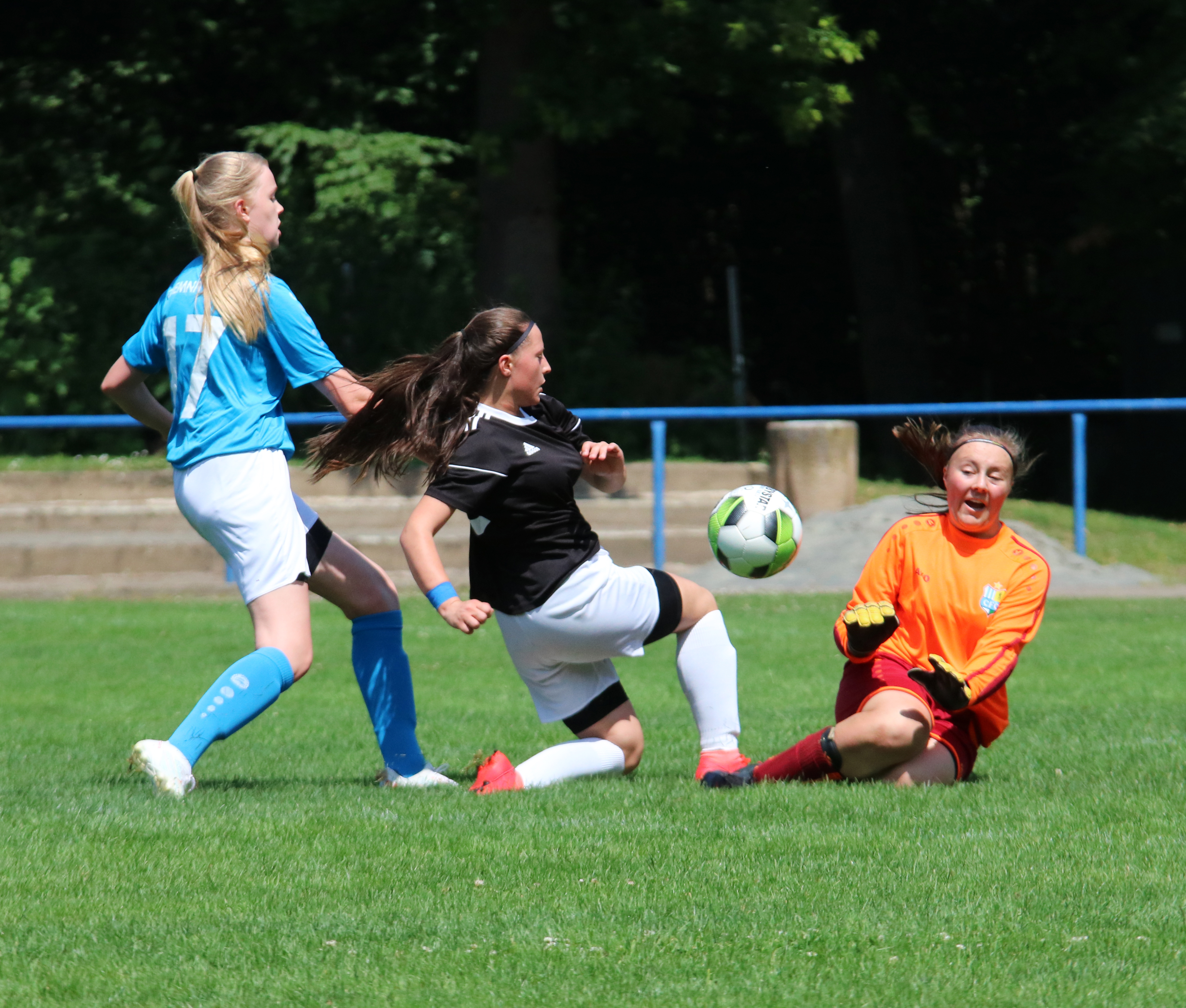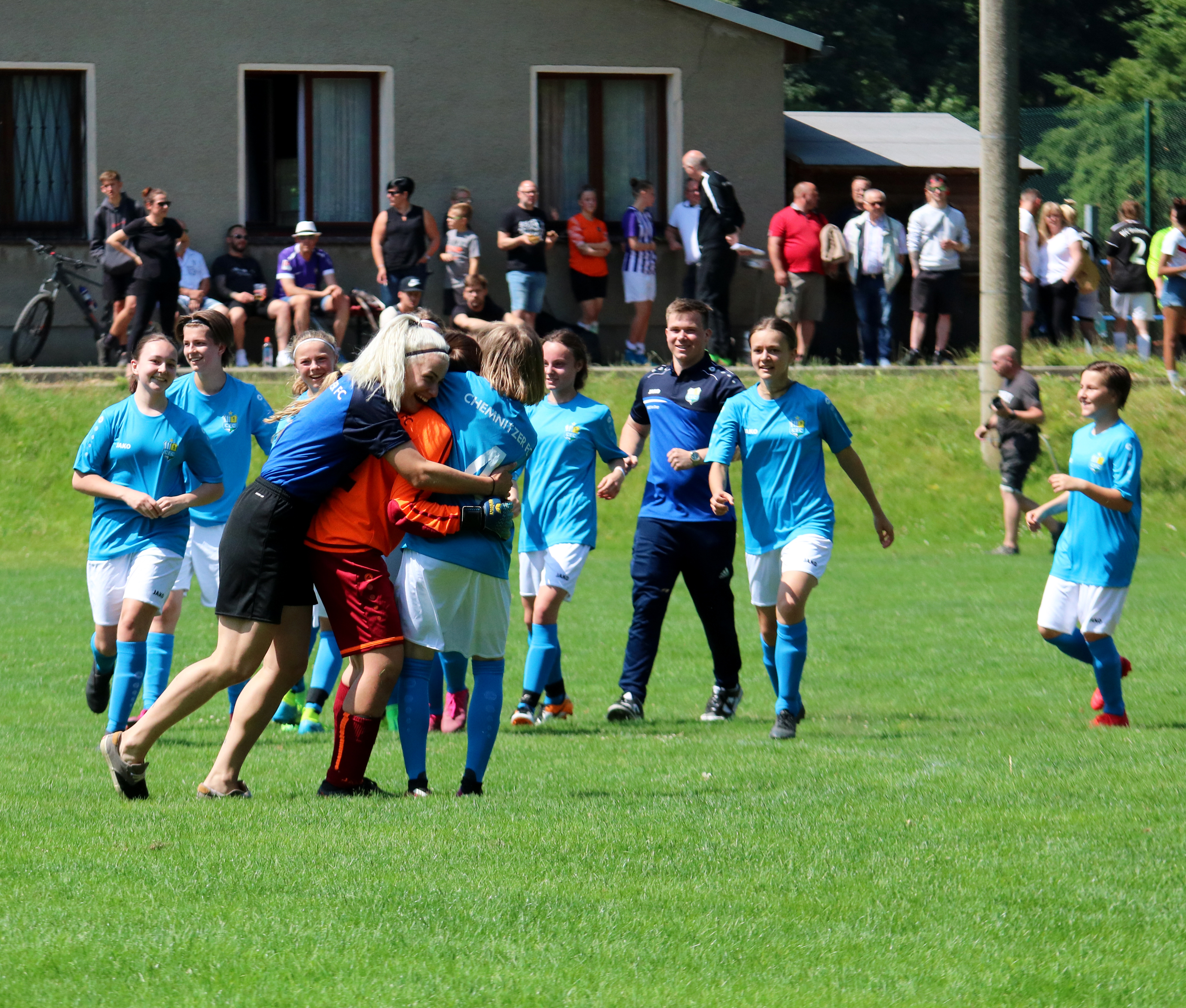 Bei bestem Wetter rollte am vergangenen Samstag bei den Juniorinnen nun endlich wieder der Ball. Zum Finalturnier des AOK Plus Landespokals trafen im ersten Halbfinale der Chemnitzer FC und der SV Eiche Reichenbrand aufeinander. Da nach 40 Minuten Spielzeit (es wurde 2x20 Minuten gespielt) noch keine Mannschaft als Sieger feststand, ging es ins Entscheidungsschießen. Die Mädels des CFCs behielten ein wenig mehr die Nerven und gewannen am Ende mit 7:6. Der Sieg war auch gleichzeitig das Ticket ins Finale.