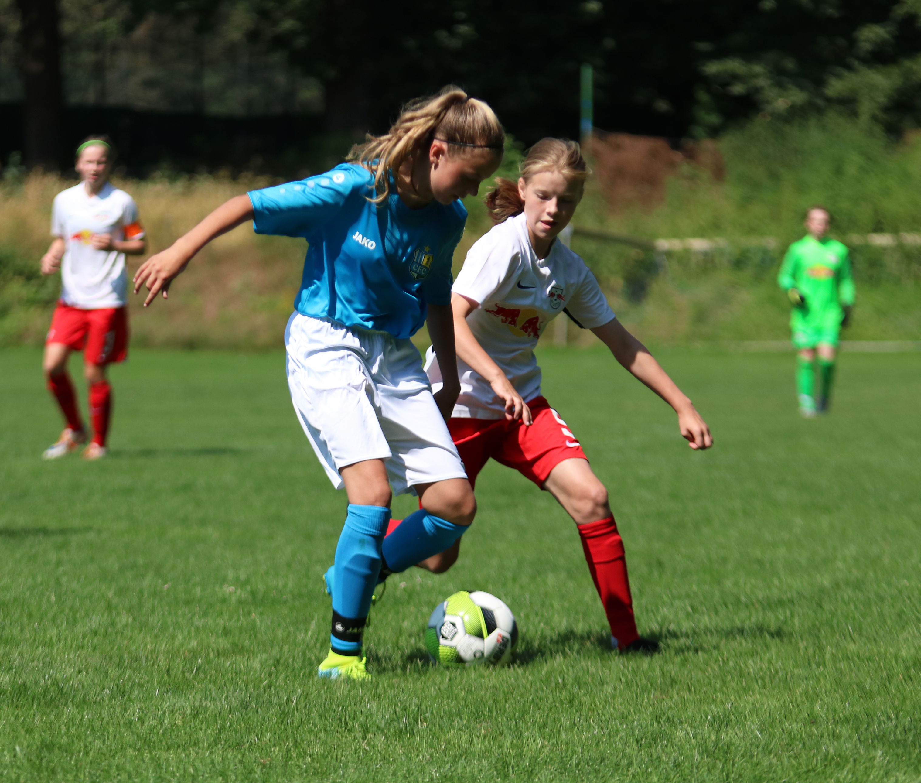 Im zweiten Halbfinale zwischen dem FC Erzgebirge Aue und den C-Juniorinnen von RasenBallsport Leipzig entschied ebenfalls ein Elfmeter das Spiel. Die Hand war im Spiel und der Schiedsrichter musste auf den Punkt zeigen. Leonie Preußler verwandelte sicher für die Leipzigerinnen, die den Chemnitzer Titelverteidigerinnen ins Finale folgten.