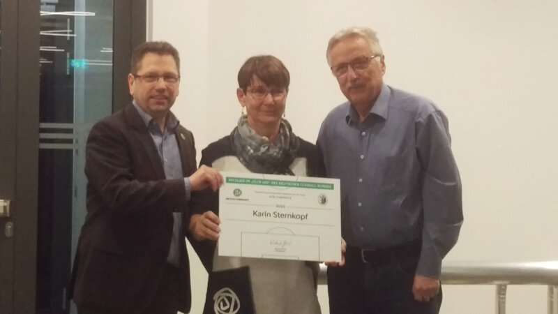Karin Sternkopfs Berufung in den "Club 100" steht stellvertretend für die vielen tausend Ehrenamtlichen in Sachsen, die den Fußball zu dem machen, was er ist. Nominiert wurde Sie für ihr Enagement vom Kreisverband Fußball Chemnitz im Rahmen der "Aktion Ehrenamt" und der SFV wählte sie in den Club 100. Für ein Jahr gehört Karin Sternkopf nun zu einem exklusiven Kreis Ehrenamtlicher, die der DFB bei einer Veranstaltung noch besonders auszeichnet.