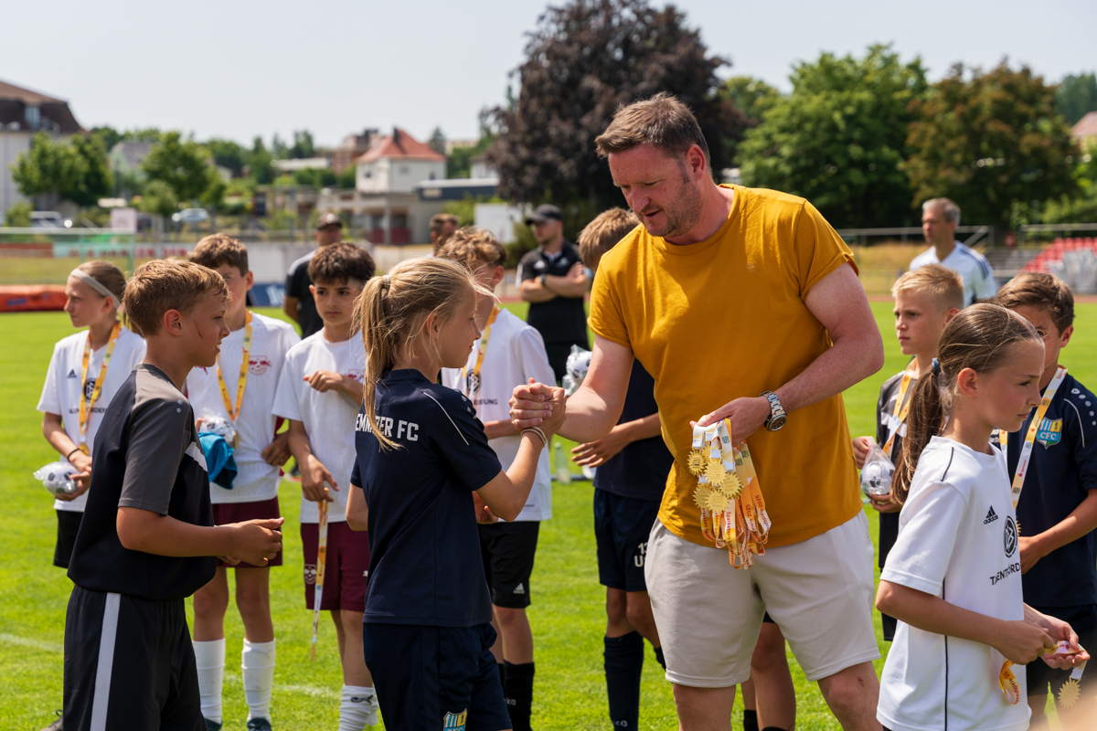 Eröffnet wurde die Veranstaltung von Sportfreund Jens Vöckler, dem Vorsitzenden des SFV-Jugendausschusses. In Spielformen „3 gegen 3“, „4 gegen 4“ und „7 gegen 7“ konnten die Fußballerinnen und Fußballer ihr Können in Defensive und Offensive in mehreren Runden, in immer wieder neu gemischten Mannschaften unter Beweis stellen. Den besten 28 beider Jahrgänge, dabei drei Torhüter, konnten am Ende kleine Präsente des DFB und SFV übergeben werden, da sie durch mehrere Einträge in den Listen der Trainer auffielen. Ein T-Shirt der Landesjugendspiele zur Erinnerung erhielt jedes Fußballtalent.