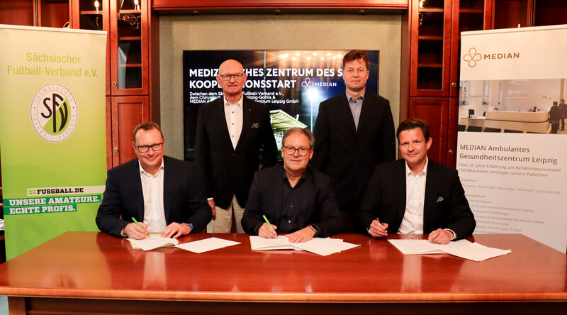 Die Unterzeichnung in der Sportschule „Egidius Braun“ bildet den Startschuss für eine Zusammenarbeit, die die medizinischen Bedürfnisse des Verbandes und seiner Mitglieder in den nächsten Jahren abdeckt. Die beiden Medizin-Spezialisten aus Leipzig sichern zukünftig im Zusammenwirken die SFV-Talentförderung sowie SFV-Veranstaltungen ab, stehen bei notwendigen Leistungstests und -diagnostiken bereit, ergänzen die Lehrgänge in der Qualifizierung mit sportmedizinischen Weiterbildungen und betreuen die SFV-Mitglieder bei fußballspezifischen Verletzungen.