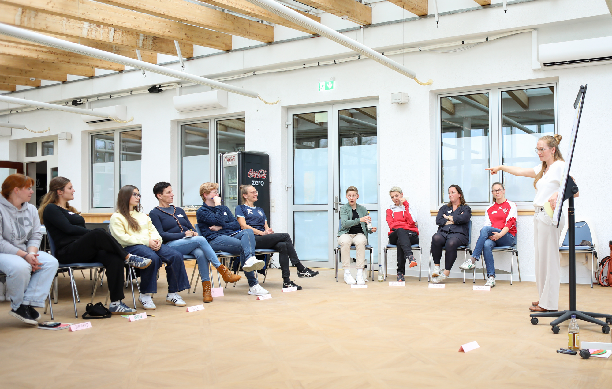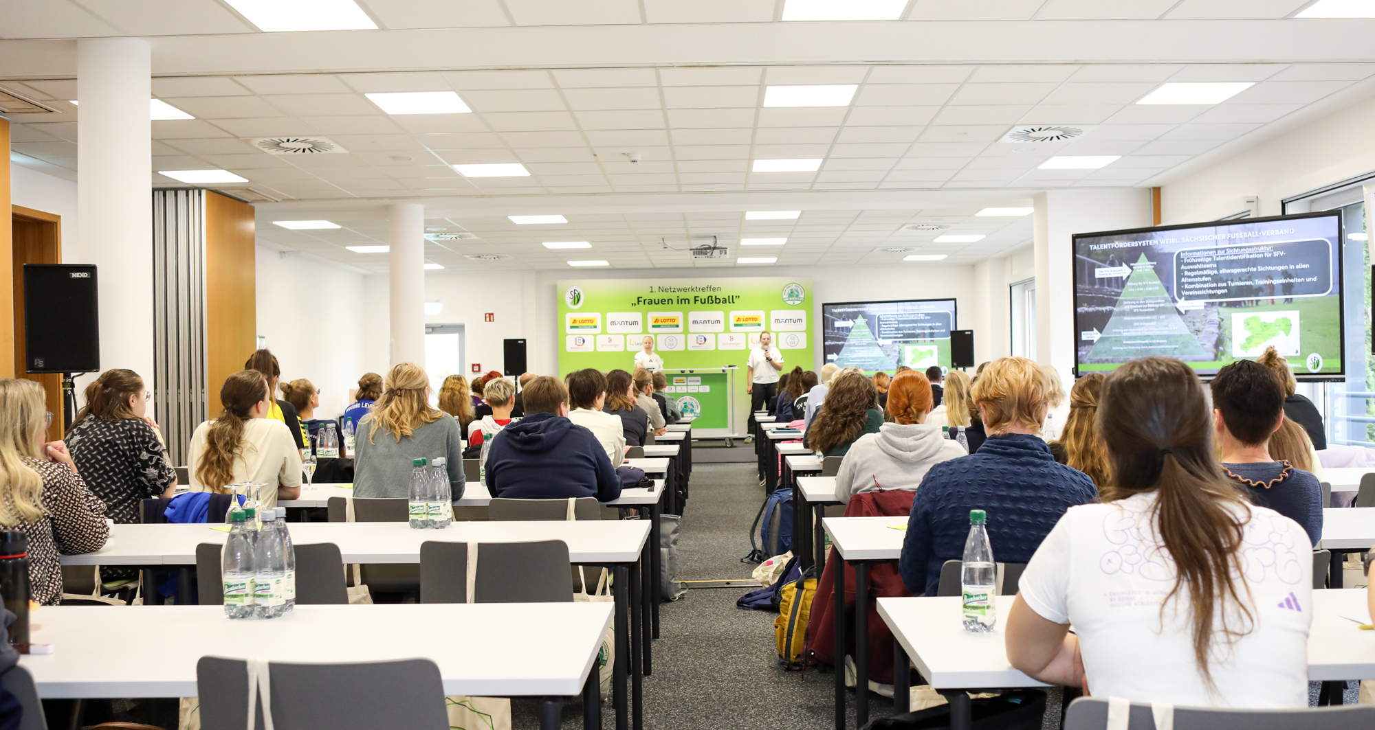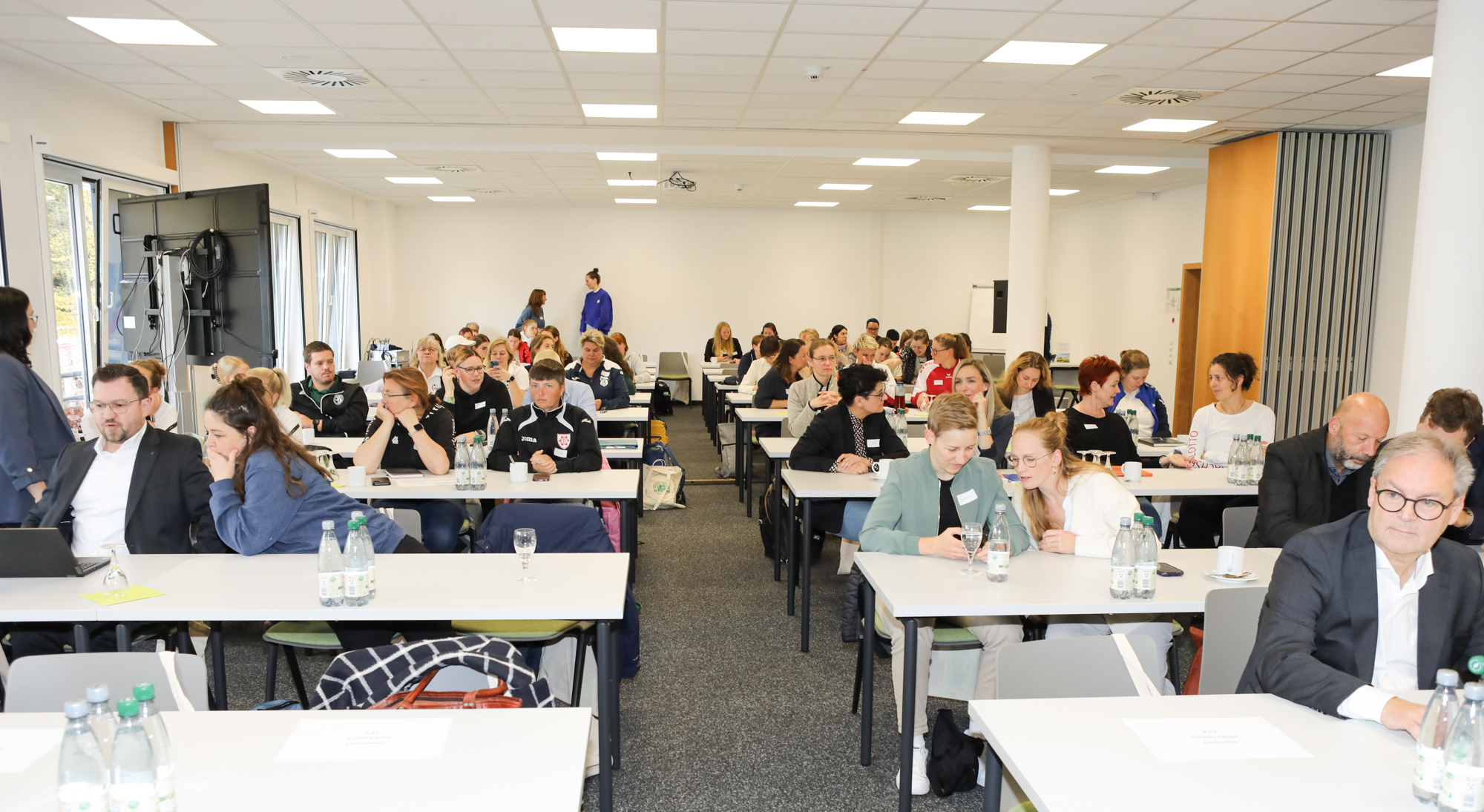 SFV-Präsident Hermann Winkler begrüßte am Samstag, 1. November 2025, rund 80 Frauen an der Sportschule Egidius Braun zur ersten Netzwerkveranstaltung des SFV. Zu den Gästen gehörten vor allem Akteurinnen des Frauen- & Mädchenfußballs in Vereinen und Verbänden, Verfechterinnen des Frauenfußballs, weibliche Führungskräfte aus der Wirtschaft sowie weitere Netzwerkprofis. Es war der Anpfiff eines Formats, das Lust auf mehr macht.