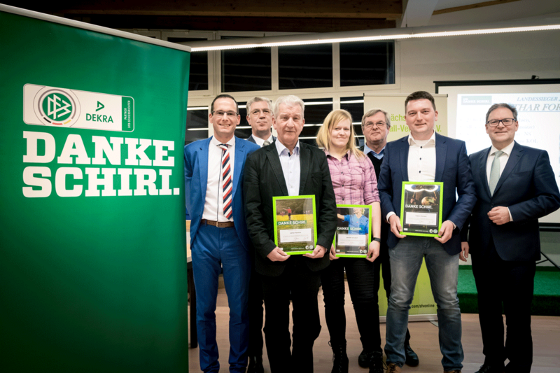 SFV-Präsident Hermann Winkler und der DEKRA-Niederlassungsleiter Matthias Krügel nahmen zusammen mit dem Verbands-Schiedsrichter-Obmann Harald Sather die Auszeichnungen in den Kategorien „Ü 50“, „U 50 und „Weiblich“ vor.
