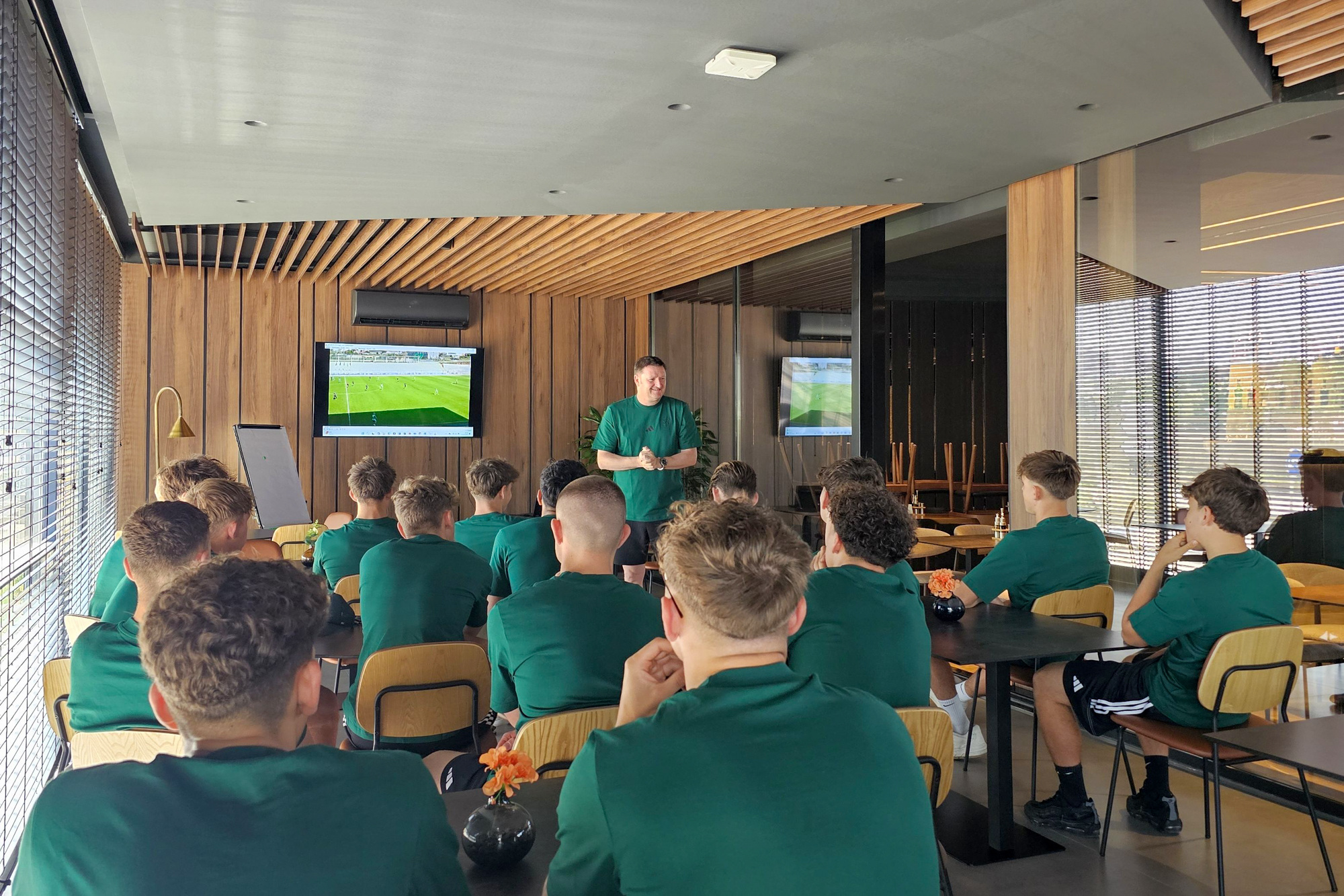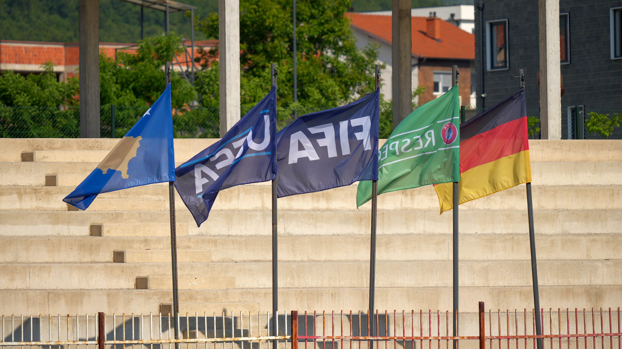 Am gleichen Tag ging es auch auf dem Rasen zur Sache, denn das Hinspiel gegen das Team von Nationalcoach Bunjaku stand an. Die jungen kosovarischen Nationalspieler stecken mitten in den Vorbereitungen für die EM-Quali und sind unter anderem aus Deutschland, Schweiz und Italien angereist. Gespielt wurde in Pristina, der Hauptstadt der Republik Kosovo, auf dem Gelände des gerade entstehenden nationalen Trainingszentrums, das nach seiner Fertigstellung beste Bedingungen bieten wird.