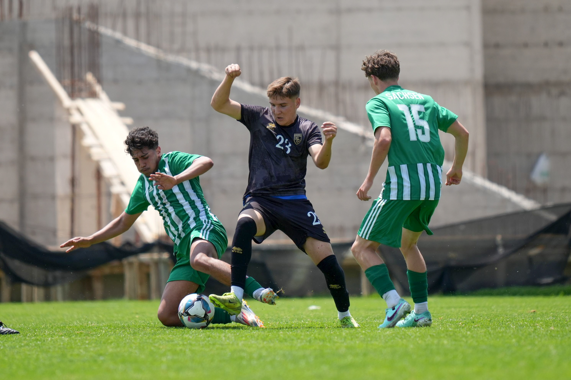Das Rückspiel am Freitag sollte ein fußballerisch würdiger Abschluss dieser Maßnahme werden. Dafür hatte sich die sächsische Landesauswahl viel vorgenommen. Leider hatte das Team einen weiteren krankheitsbedingten Ausfall zu verschmerzen. Das bedeutete umso mehr: auf die Zähne beißen und kämpfen! Bei subtropischen Temperaturen gar nicht so leicht, aber die Mannschaft meisterte diese Aufgabe sehr gut. Wie im Hinspiel ging Sachsen schnell in Führung. Im weiteren Spielverlauf konnte Sachsen auf 2:0 erhöhen und hatte noch weitere Torchancen in der flimmernden Hitze von Pristina auf dem Fuß. Nach dem Seitenwechsel und den frischen Spielern auf kosovarischer Seite hielt der sächsische 15-Mann-Kader tapfer dagegen und kann am Ende mit dem 2:2-Endstand sehr zufrieden sein.