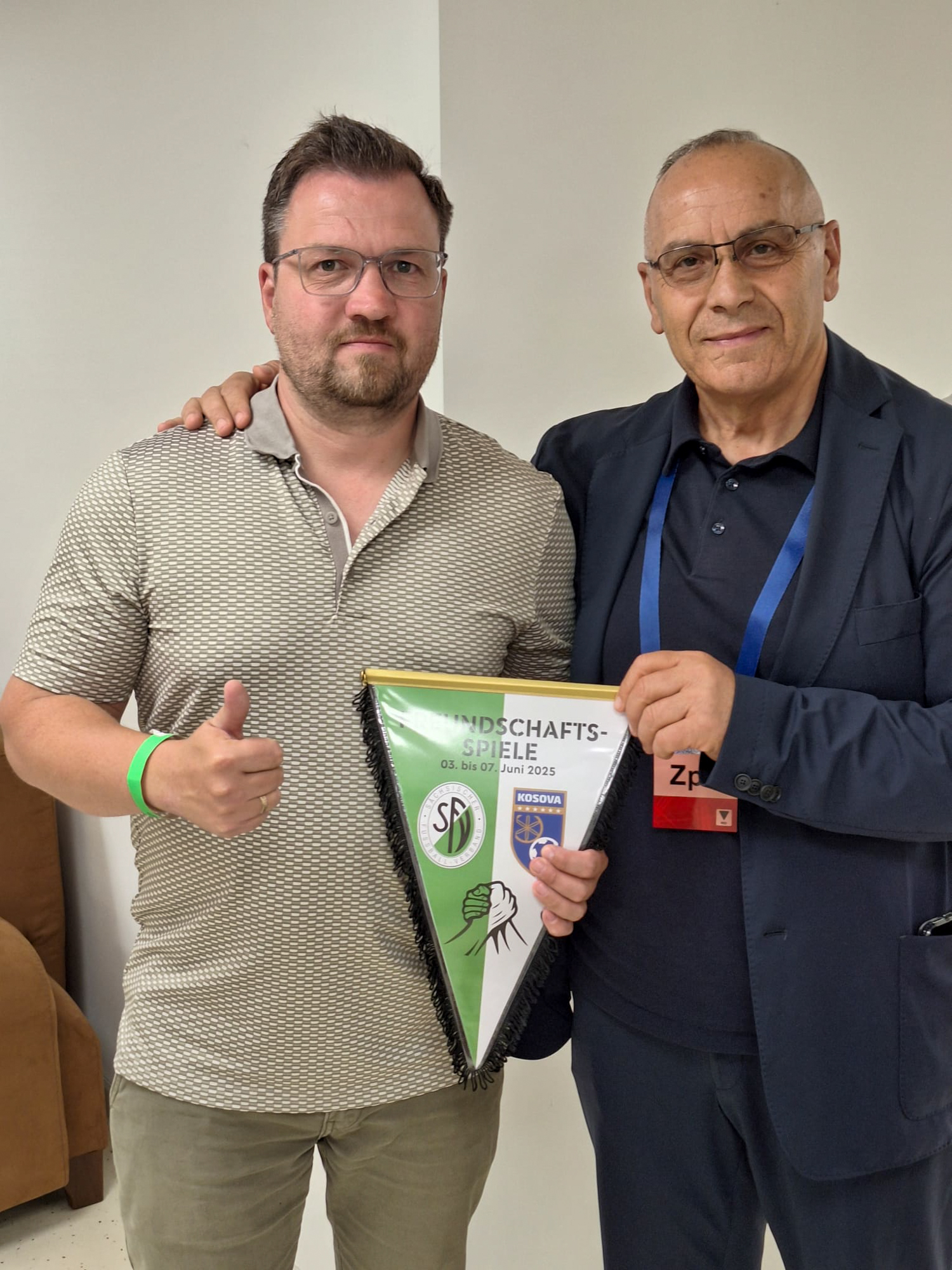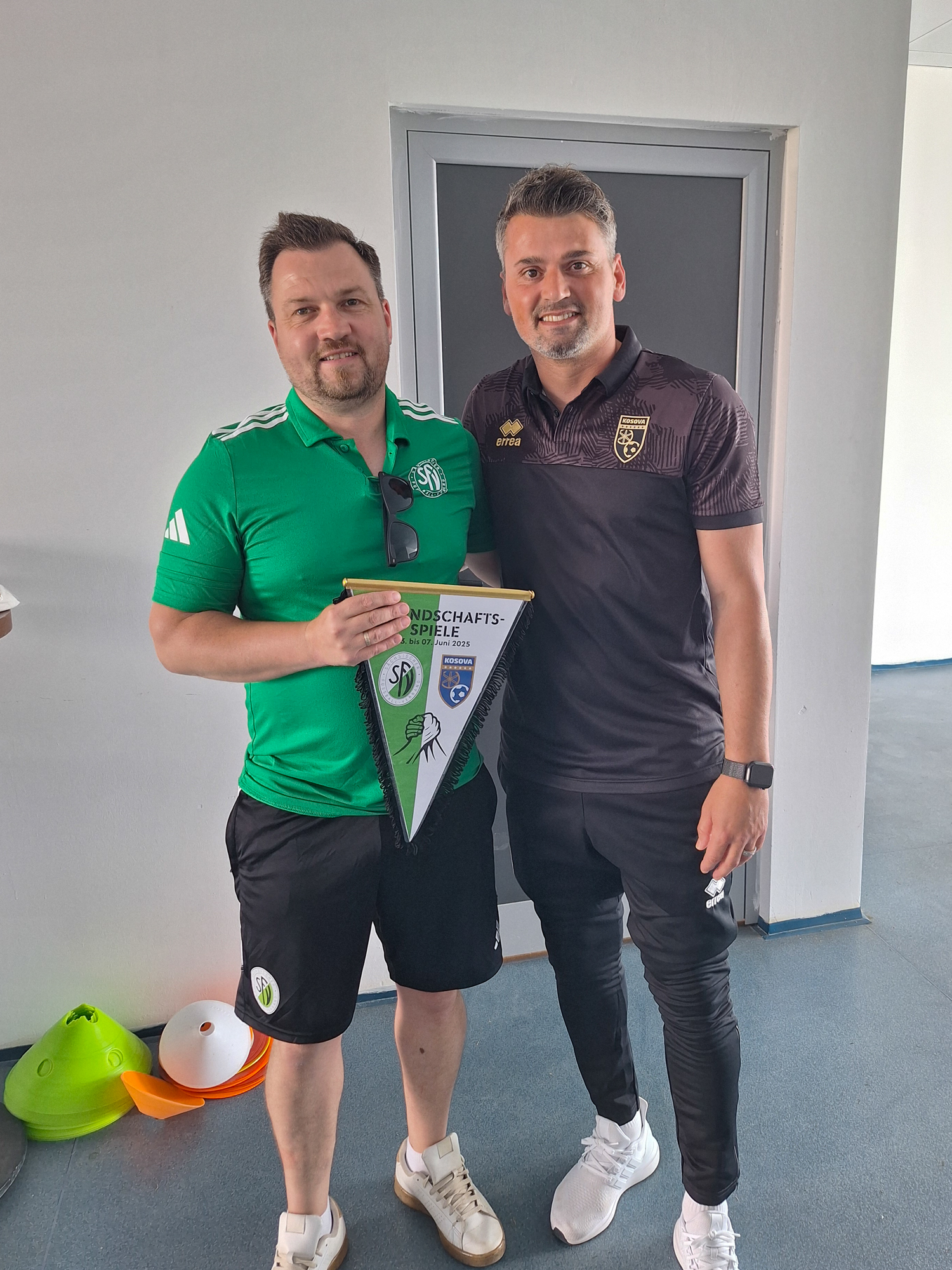 Vom 03. bis 07. Juni war die U 18-Landesauswahl von Sachsen bei ihrem Kooperationspartner FFK (Kosovarischer Fußballverband) im Kosovo zu Gast. Bei heißen 34 °C stand am Mittwoch zunächst ein besonderes Treffen auf dem Programm. Unter anderem gab es ein Kennenlernen und Austausch mit dem Präsidenten des Kosovarischen Fußballverbandes Agim Ademi sowie den Botschaftern aus Deutschland und dem Kosovo, Jörn Rohde und Faruk Ajeti. Auch der Coach des U 18-Nationalteams wurde mit Freude begrüßt. Ein alter Bekannter sicherlich für den ein oder anderen: Albert Bunjaku.