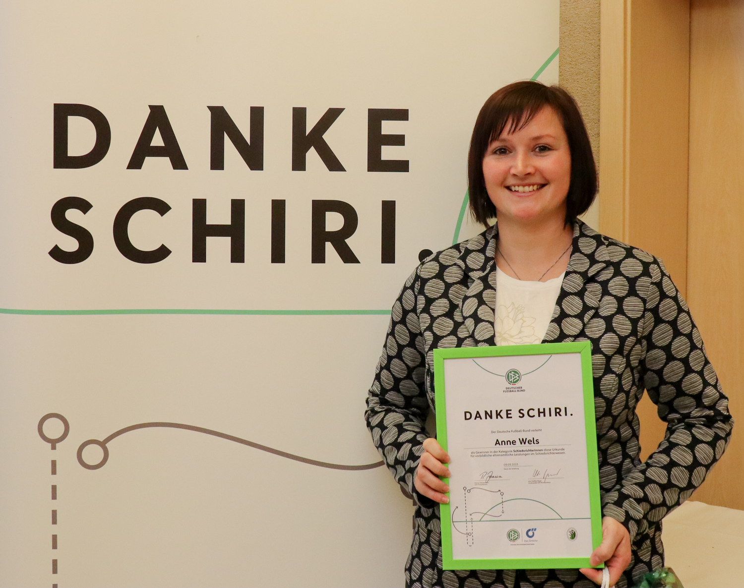 SFV-Vizepräsident Heiko Petzold, Harald Sather als Vorsitzender der Schiedsrichterausschusses und Roksana Leonetti („Das Örtliche“) nahmen zusammen die Auszeichnungen der Nominierten vor, die von den 13 Stadt- und Kreisfußballverbänden für die Aktion „DANKE SCHIRI“ vorgeschlagen wurden. Bei der Auswahl der Jahressiegerinnen und -sieger fließen neben den harten Fakten, wie der Anzahl der Spiele oder die Dauer der Schiedsrichtertätigkeit, auch die sozialen Leistungen wie z.B. die Unterstützung von jungen Schiedsrichterinnen und Schiedsrichtern, die Mitarbeit bei Lehrgängen oder das Engagement bei der Schiedsrichtergewinnung in die Entscheidung ein.