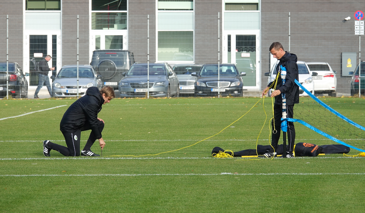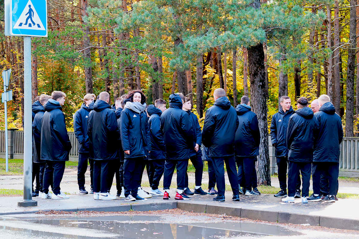 Der heutige Tagesplan sah ein entspanntes Vertrautwerden mit der estnischen Umgebung vor. Am Vormittag erkundeten alle zusammen das Viertel. Es wehte eine steife Brise, aber die Sonnenstrahlen, welche ab und zu durch die dichten Wolken lugten, machten unsere Tour zu einem angenehmen Herbstspaziergang. Nach einer kurzen Ruhepause, packten die Jungs auch schon ihre Sachen und es ging das erste Mal auf das Trainings- und Spielgelände in Tallinn. In den kommenden Stunden machte die Mannschaft und auch das Funktionsteam Bekanntschaft mit dem Tallinn'schen Regen. Doch die Jungs ließen sich durch diese Wetterlage überhaupt nicht beeindrucken und nahmen es mit Humor. Schließlich war jeder hochmotiviert, im Hinblick auf das erste Spiel morgen, ein gutes Training zu absolvieren. Pünktlich zum Ende der Einheit klarte dann der Himmel auf und tauchte den Rasen in leuchtende Farben. Versöhnlicher Abschluss!