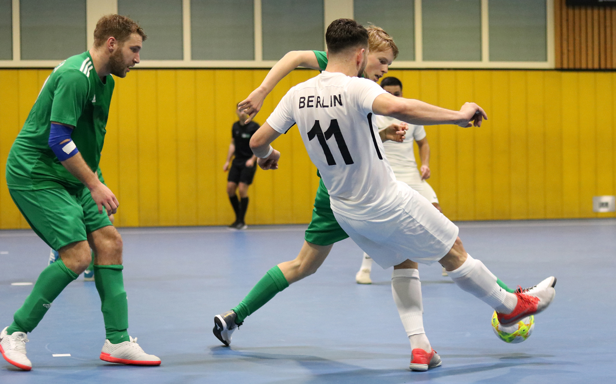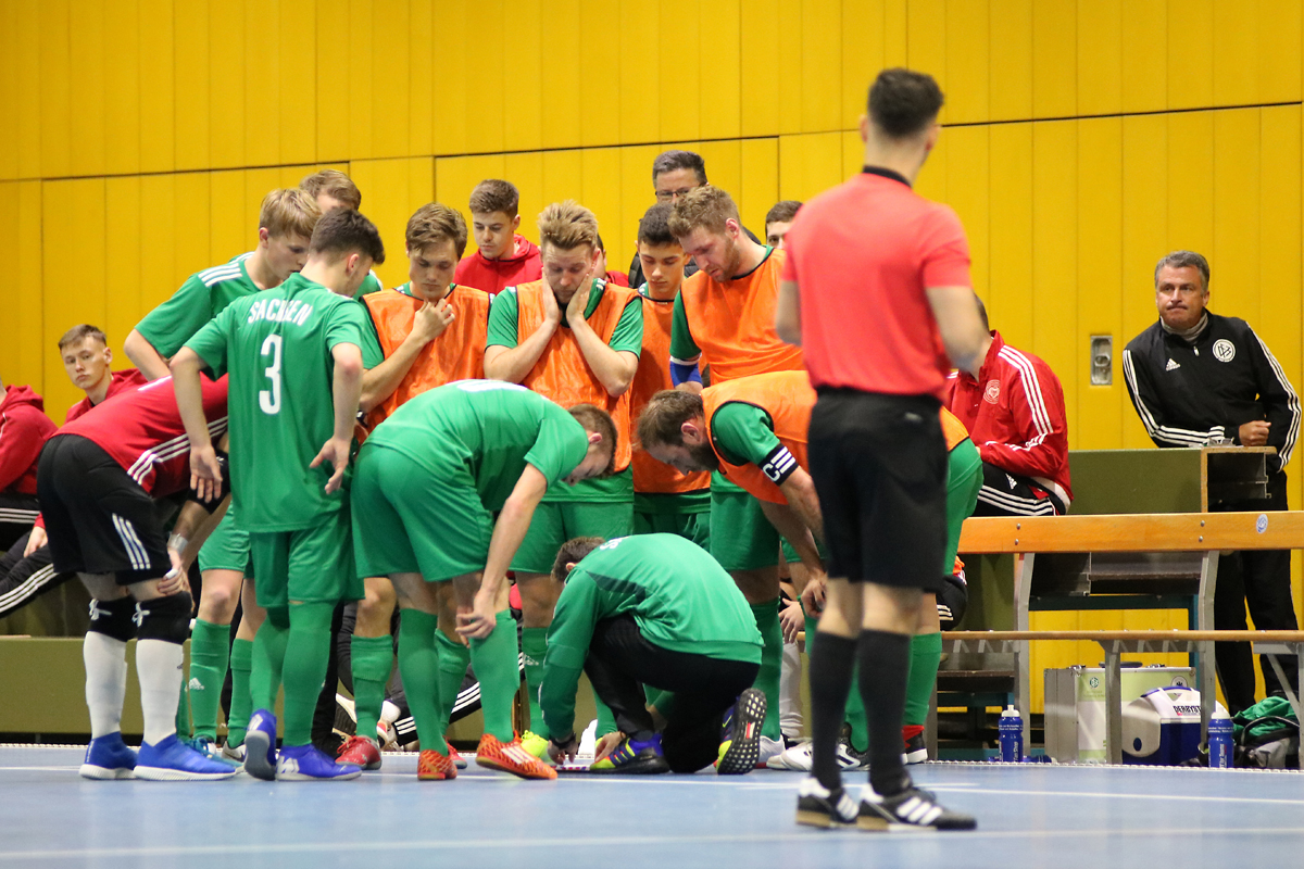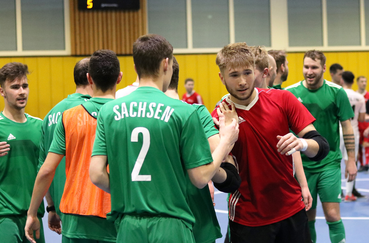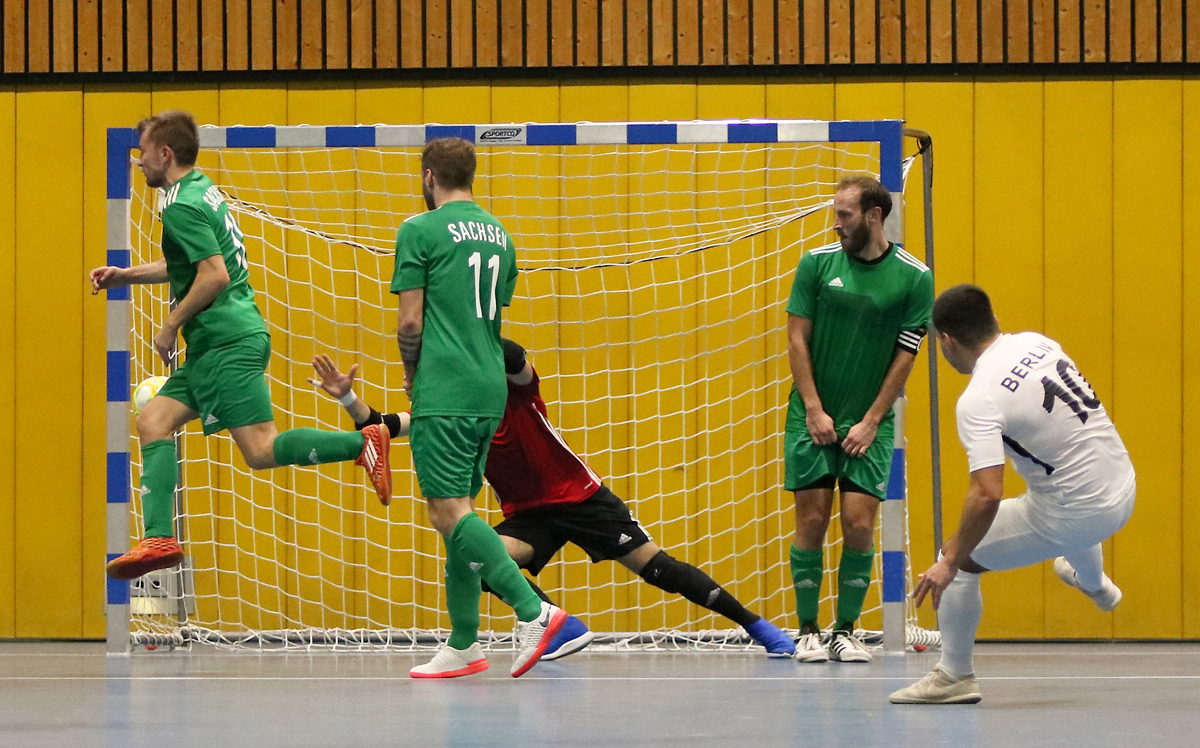 Nach den ersten 10 Minuten gegen die Favoriten aus Berlin musste man sich kurz mal die Augen reiben. 4:1 führte Sachsen nach der Hälfte der Zeit und die Berliner zeigten Nerven. Für Kapitän Durim Elezi war nach einer Gelb-Roten-Karte die Partie beendet. Leon Ben Hahn (FC Oberlausitz Neugersdorf), Christoph Jackisch (FC Grimma), Philip Heineccius (SC Borea Dresden Futsal) und Norman Kloß (FSV Budissa Bautzen) netzten für Sachsen. Im zweiten Drittel nahmen die Berliner allerdings das Heft in die Hand und kamen sogar zum Ausgleich. Damit hatten die Hauptstädter eigentlich das Momentum auf ihrer Seite. Doch die junge sächsische Mannschaft wehrte sich erfolgreich und Leon Ben Hahn erzielte seinen zweiten Treffer und damit den umjubelten 5:4-Siegtreffer.