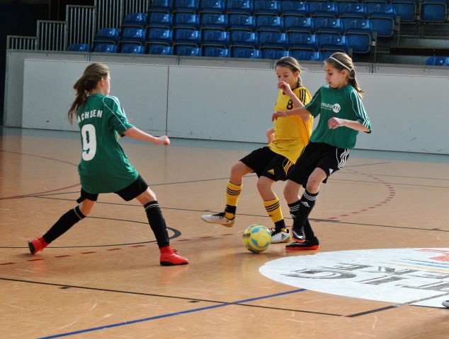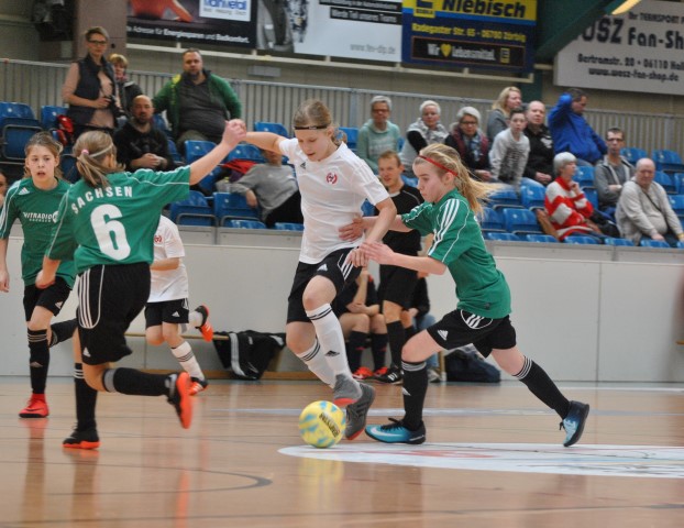 Am Samstag trafen sich alle NOFV-Verbände in Sandersdorf zum Ländervergleich in der Halle und die sächsische Auswahl um Trainerin Franka Schmidt verwies Brandenburg und Berlin auf die Plätze. Mit einem mannschaftlich geschlossenen Auftritt und einer starken defensiven Leistung erarbeiteten sich die Mädels auch das notwendige Glück. So traf Luisa Hoferichter im Spiel gegen Sachsen-Anhalt Sekunden vor dem Abpfiff zum 1:0-Siegtreffer. Insbesondere Nele Jendrossek (FC Grimma) und Leonie Preußler (Dresdner SC) konnten mit sehr überzeugenden Leistungen auf sich aufmerksam machen.