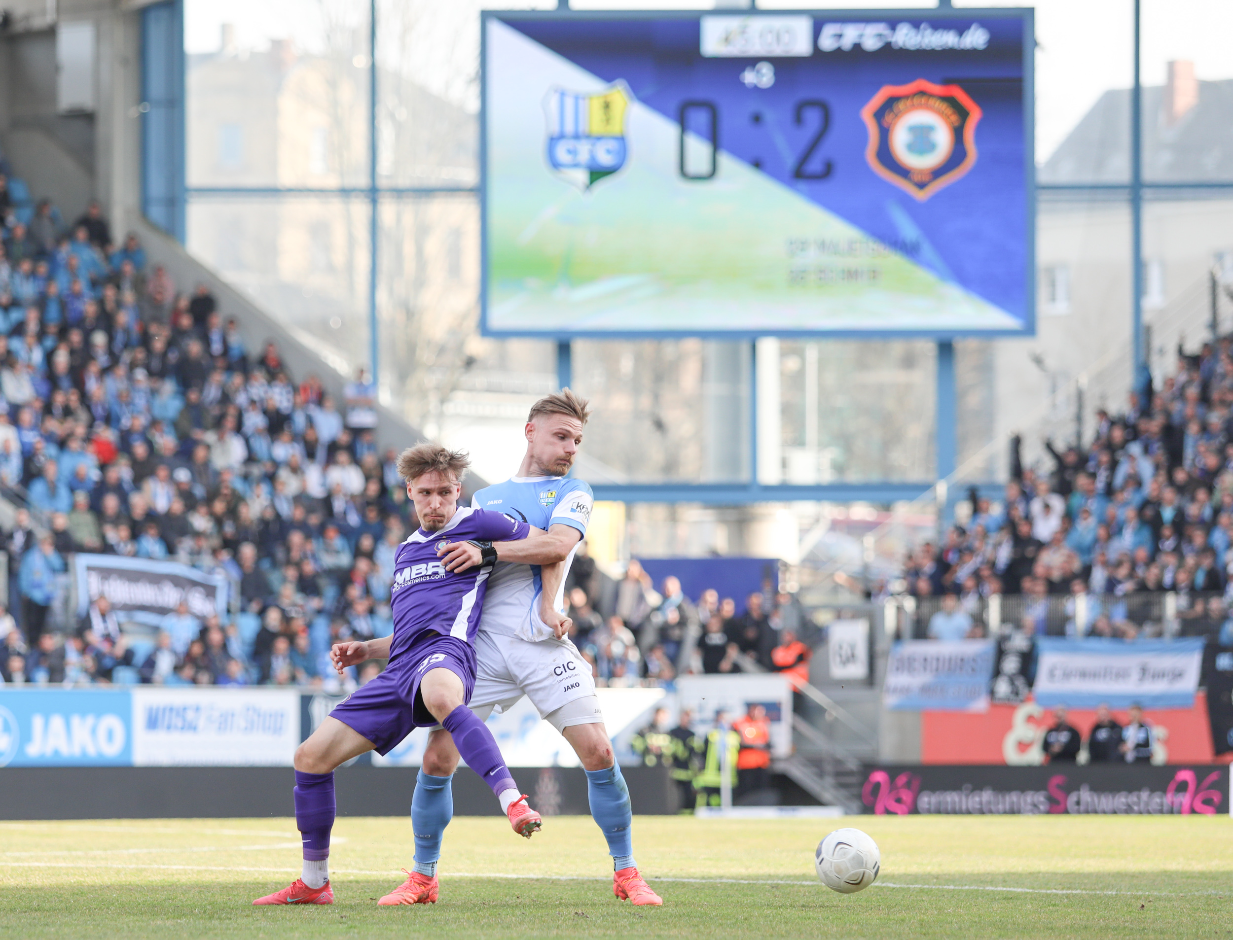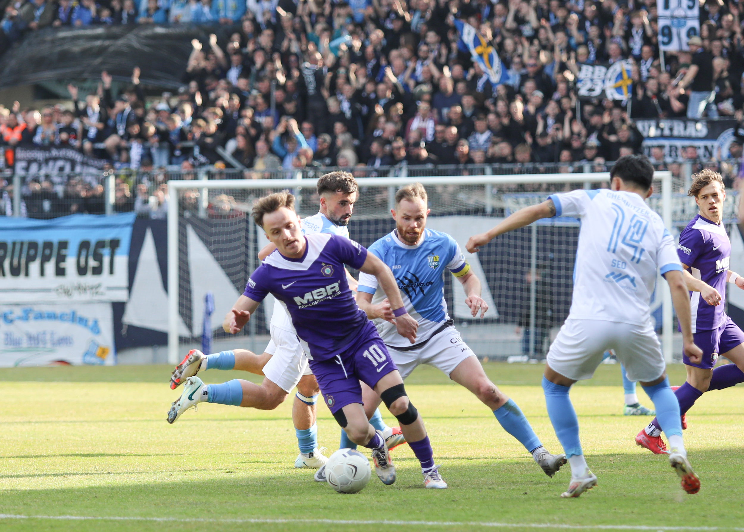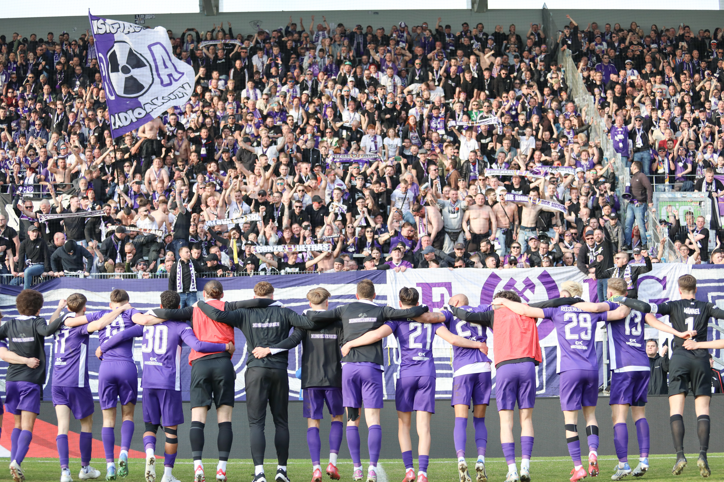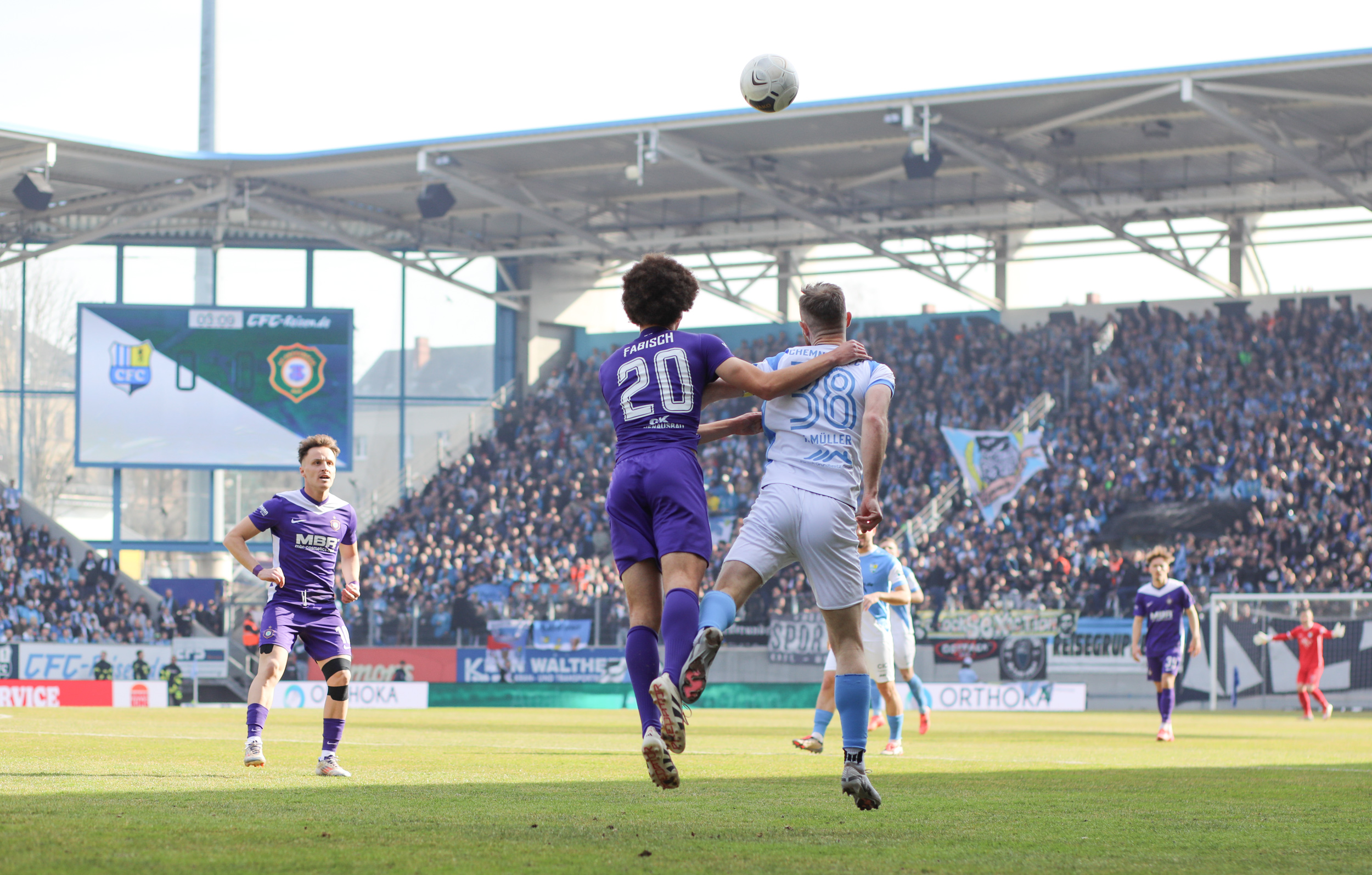 Und auch der FC Erzgebirge Aue wurde seiner Favoritenrolle gerecht. Mit 2:0 feierte der Drittligist einen verdienten Bezirksderby-Sieg vor einer beeindruckenden Kulisse mit knapp 15.000 Zuschauern im Stadion an der Gellertstraße. Besonders in der ersten Hälfte hatte die Mannschaft von Jens Härtel die Himmelblauen im Griff und netzte durch Schmid (26') und Majetschak (29') doppelt. Im zweiten Durchgang investierte der CFC mehr, hatte auch ein paar Abschlüsse und einmal rettete die Latte für den geschlagenen Männel, insgesamt brachte der CFC die Lila-Weißen nur selten in Verlegenheit.