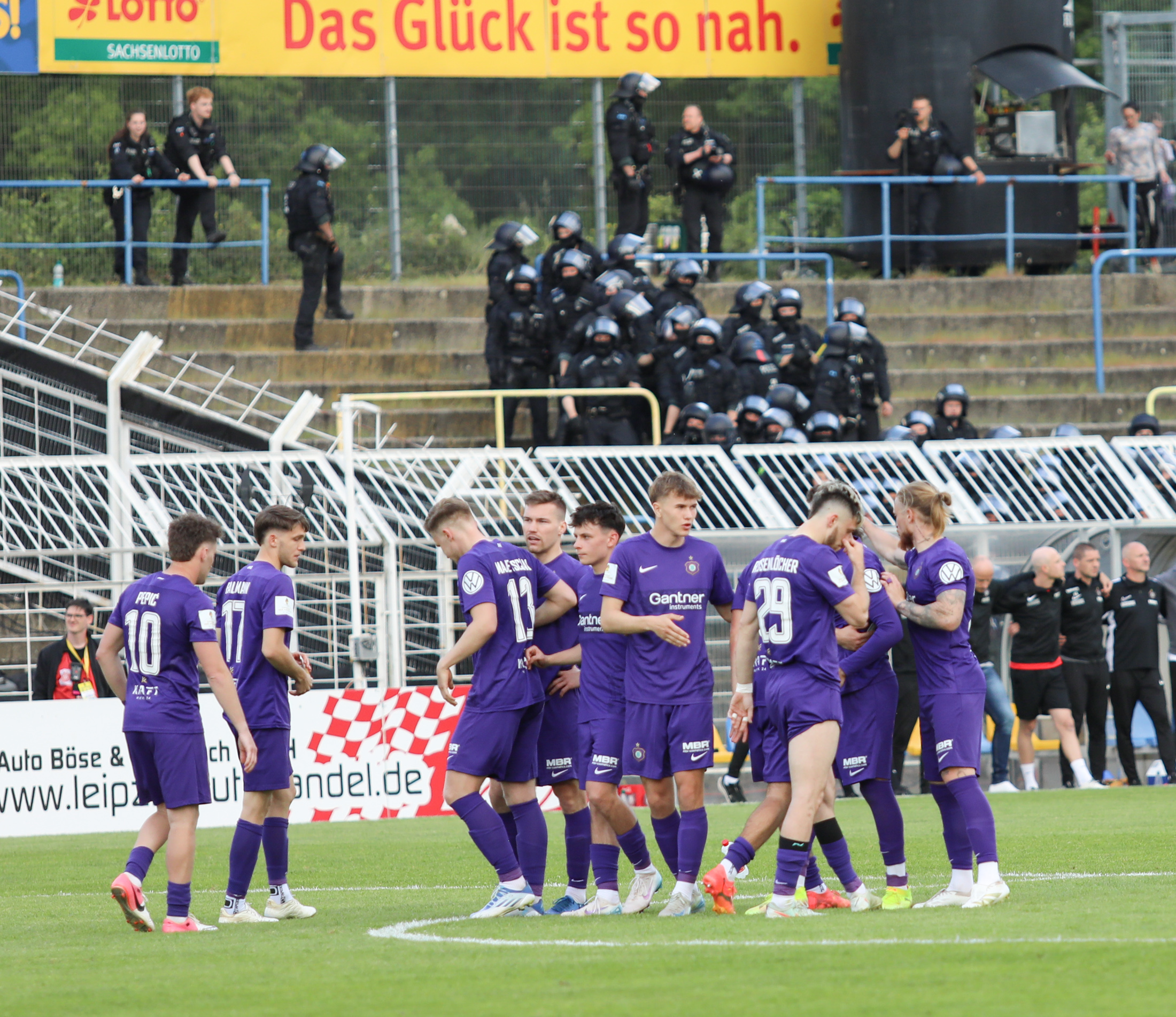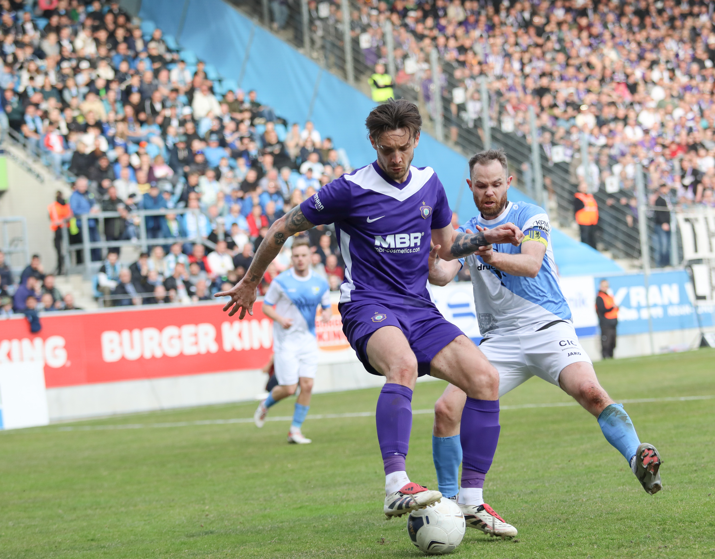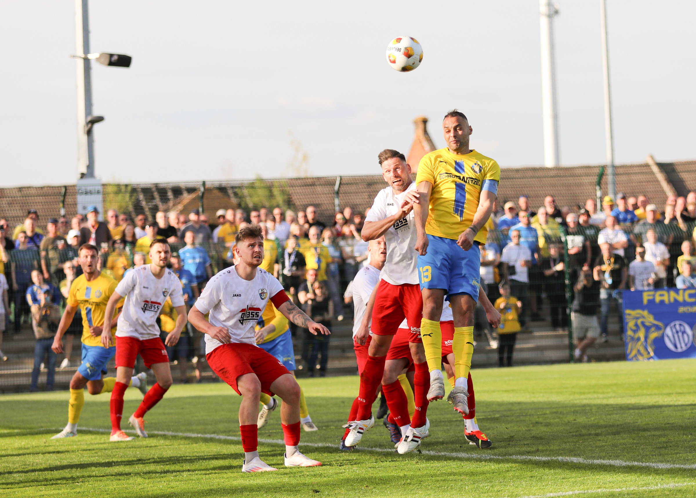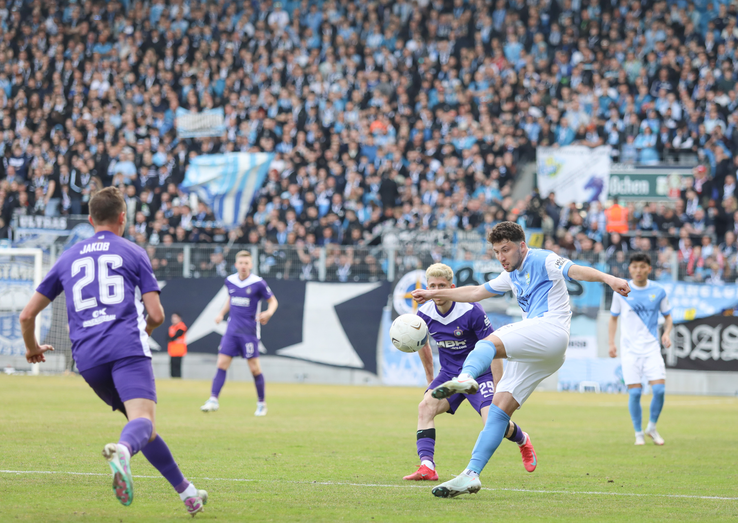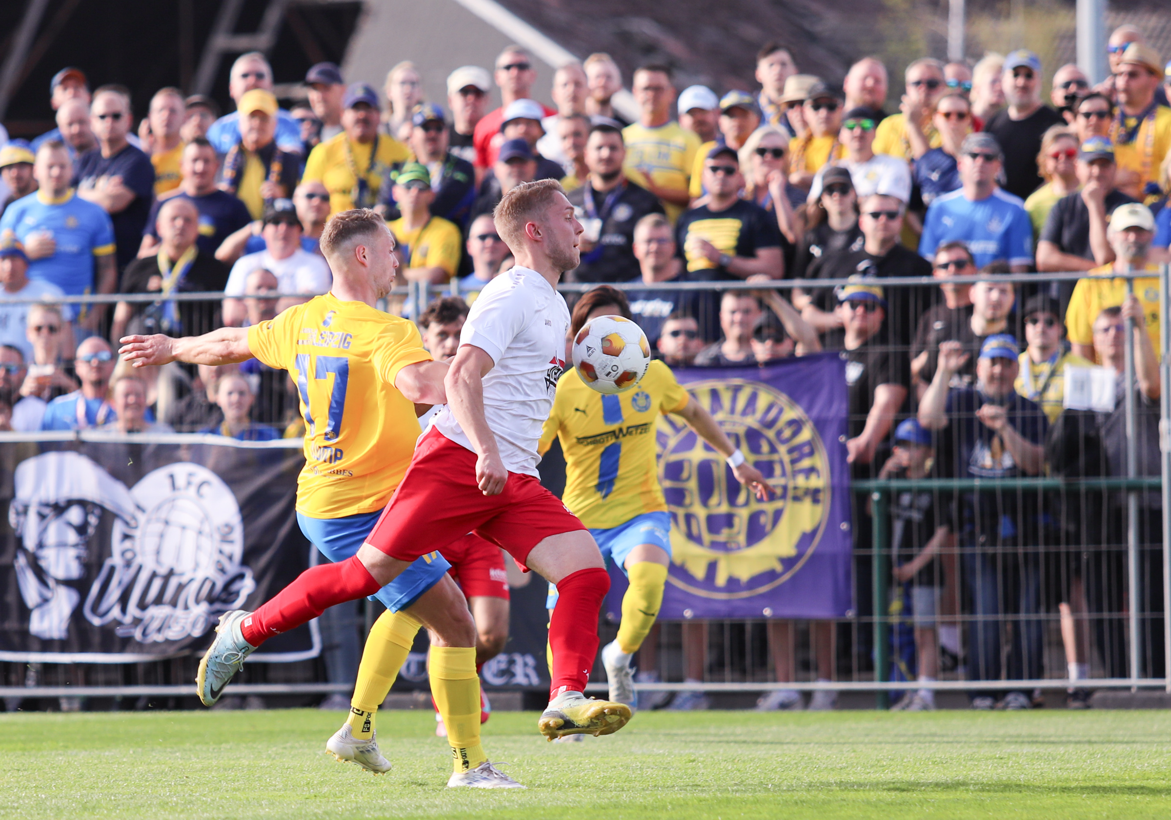 Und auch der FC Erzgebirge Aue wurde seiner Favoritenrolle gerecht. Mit 2:0 feierte der Drittligist einen verdienten Bezirksderby-Sieg vor einer beeindruckenden Kulisse mit knapp 15.000 Zuschauern im Stadion an der Gellertstraße. Besonders in der ersten Hälfte hatte die Mannschaft von Jens Härtel die Himmelblauen im Griff und netzte durch Schmid (26') und Majetschak (29') doppelt. Im zweiten Durchgang investierte der CFC mehr, hatte auch ein paar Abschlüsse und einmal rettete die Latte für den geschlagenen Männel, insgesamt brachte der CFC die Lila-Weißen nur selten in Verlegenheit.