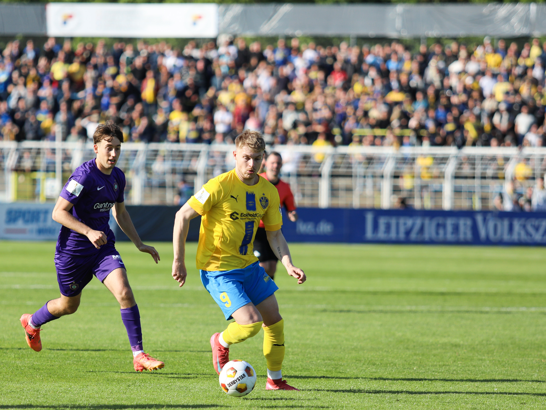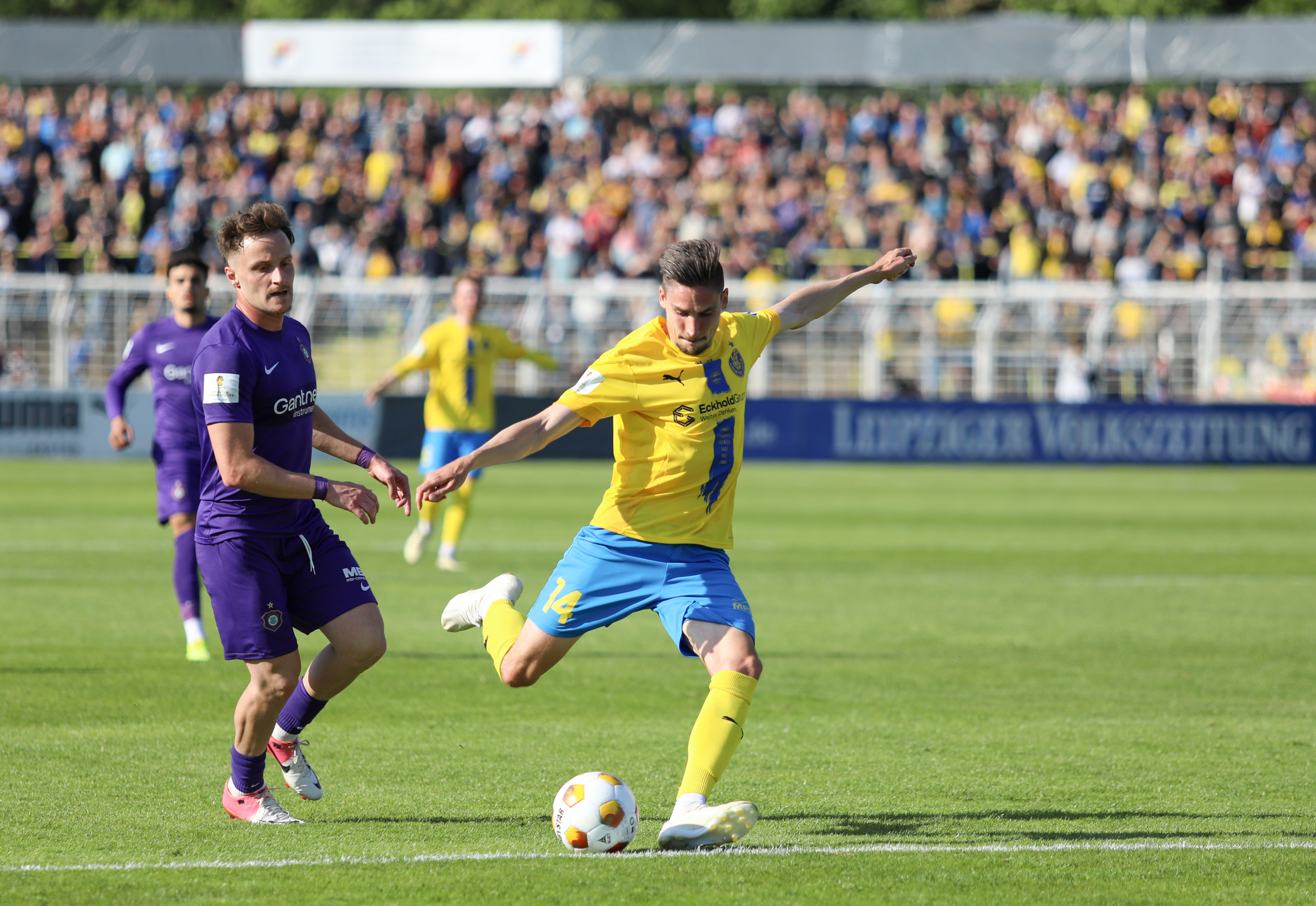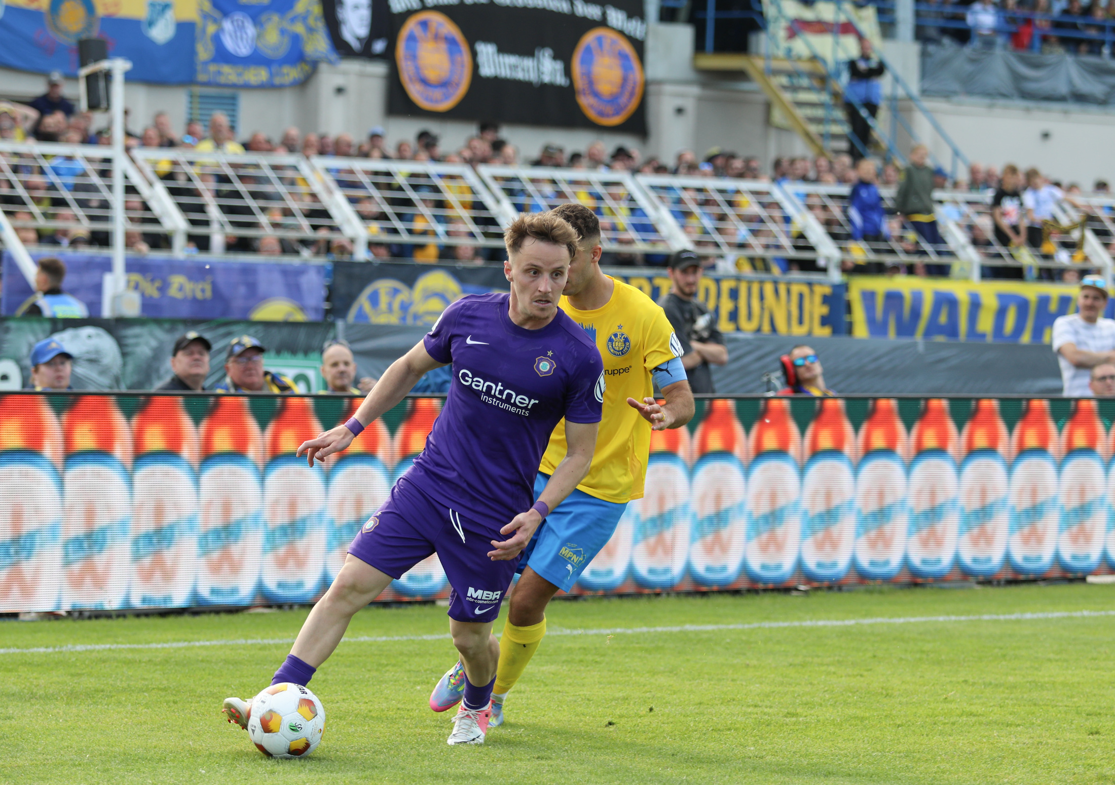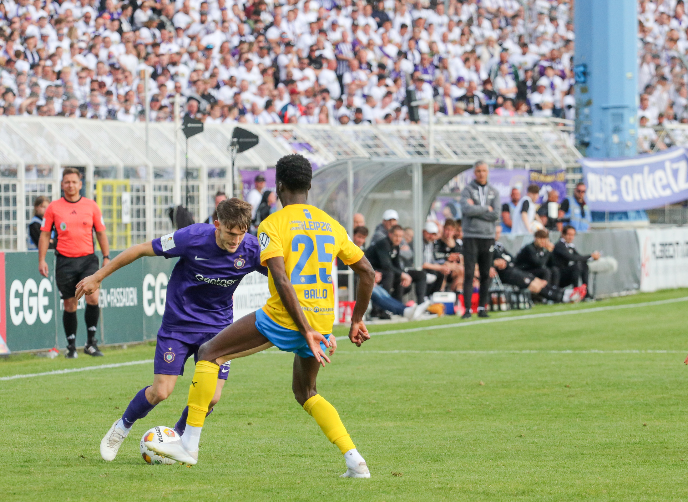 Und auch der FC Erzgebirge Aue wurde seiner Favoritenrolle gerecht. Mit 2:0 feierte der Drittligist einen verdienten Bezirksderby-Sieg vor einer beeindruckenden Kulisse mit knapp 15.000 Zuschauern im Stadion an der Gellertstraße. Besonders in der ersten Hälfte hatte die Mannschaft von Jens Härtel die Himmelblauen im Griff und netzte durch Schmid (26') und Majetschak (29') doppelt. Im zweiten Durchgang investierte der CFC mehr, hatte auch ein paar Abschlüsse und einmal rettete die Latte für den geschlagenen Männel, insgesamt brachte der CFC die Lila-Weißen nur selten in Verlegenheit.