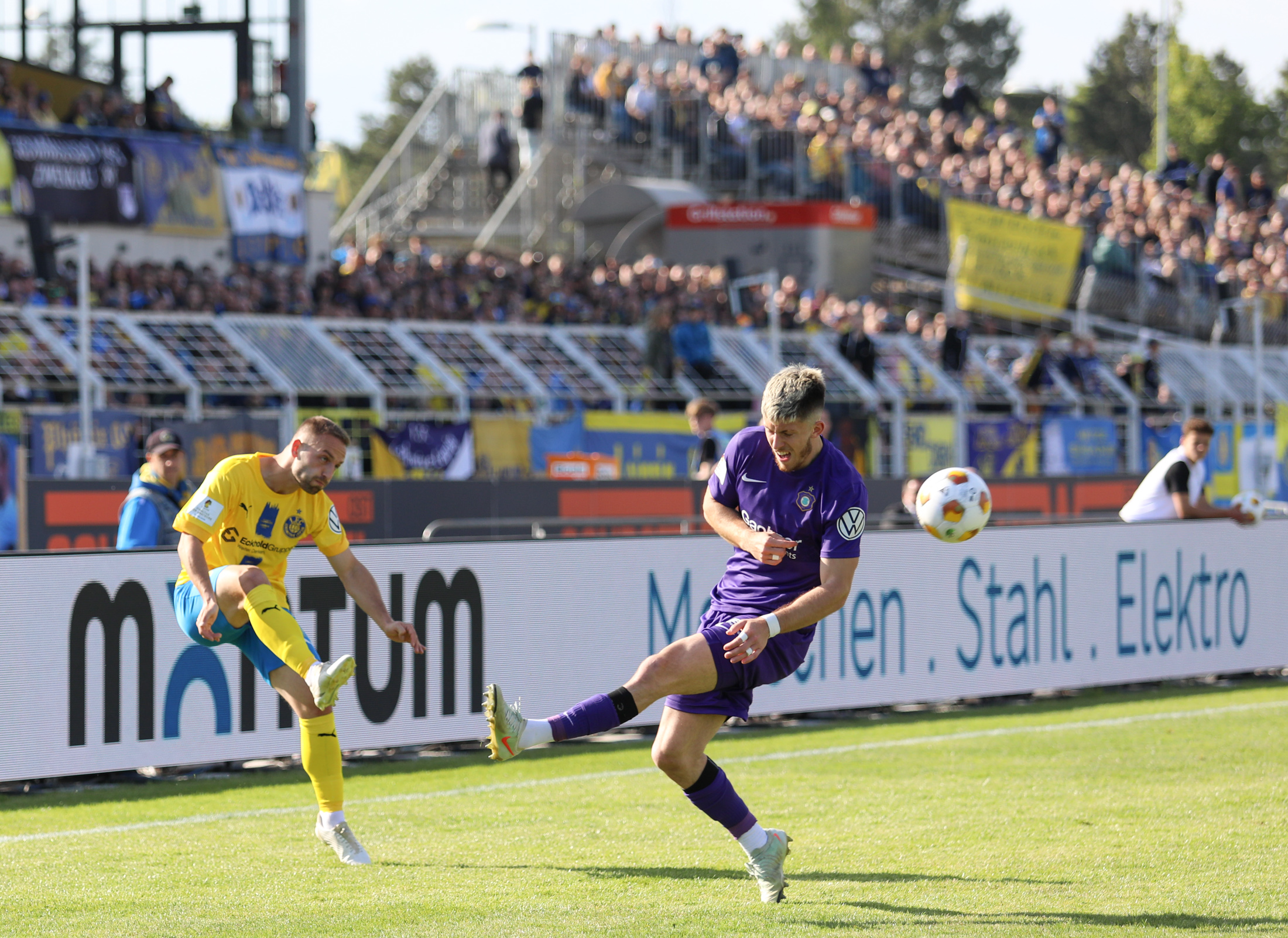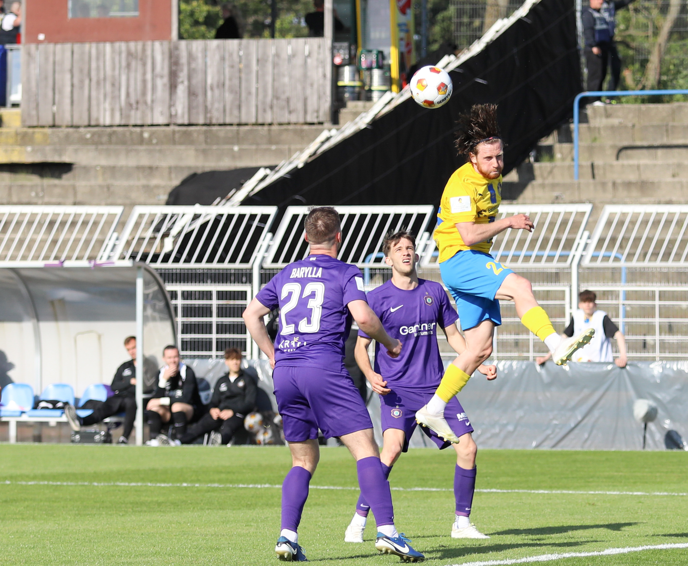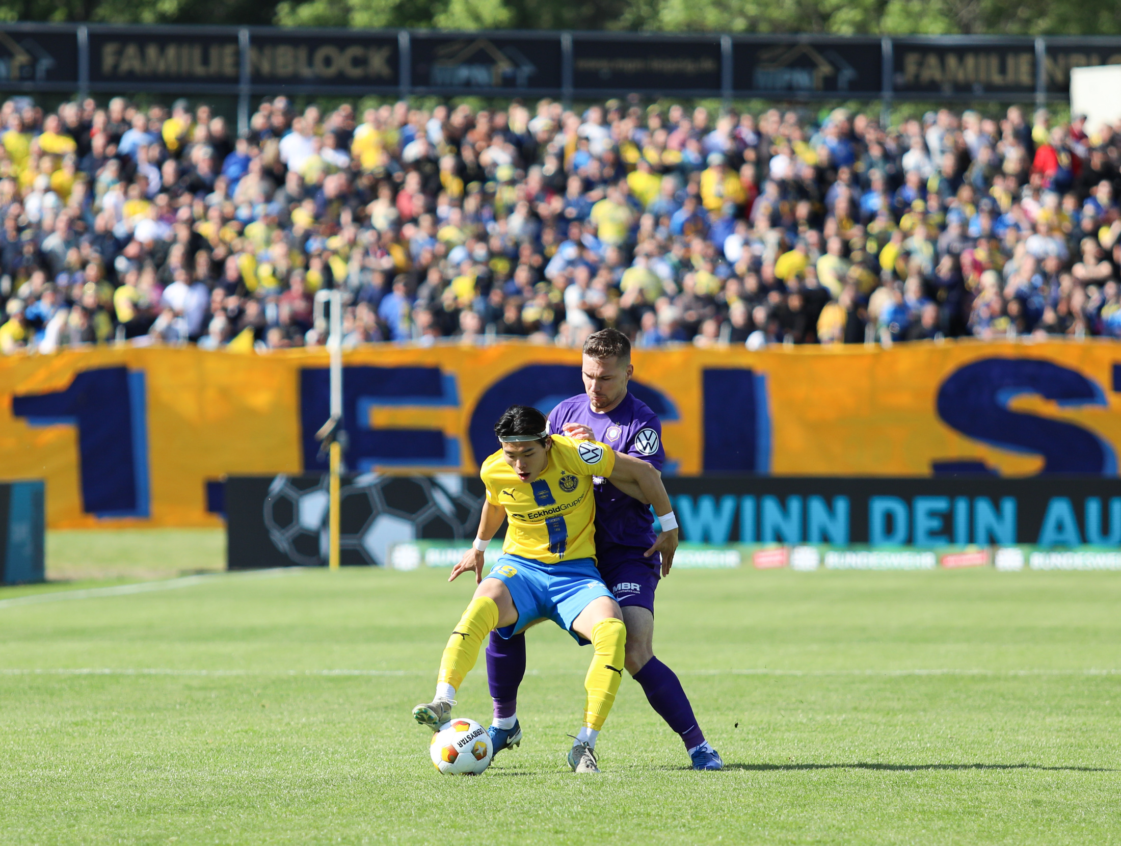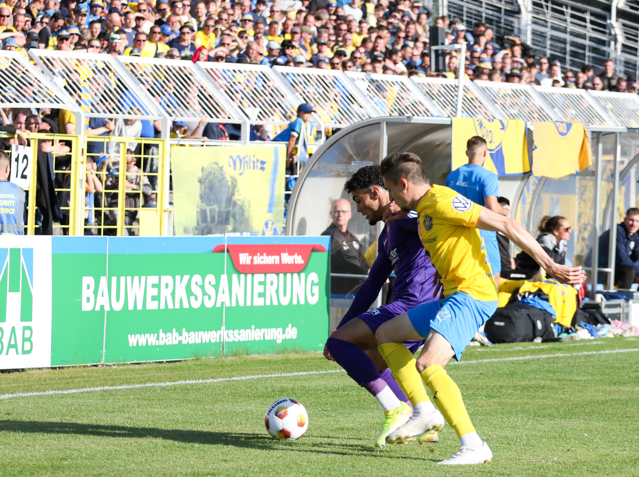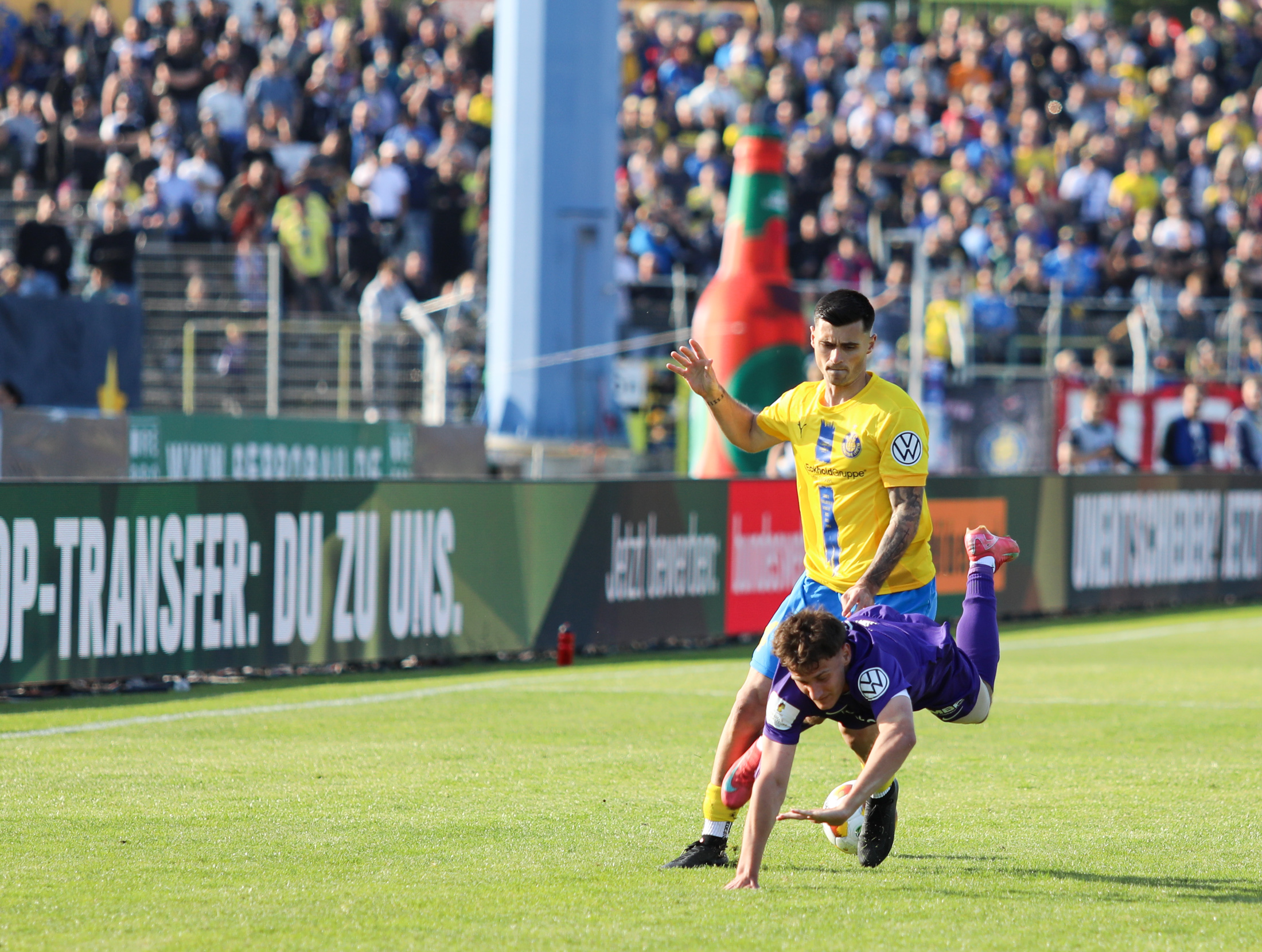 Und auch der FC Erzgebirge Aue wurde seiner Favoritenrolle gerecht. Mit 2:0 feierte der Drittligist einen verdienten Bezirksderby-Sieg vor einer beeindruckenden Kulisse mit knapp 15.000 Zuschauern im Stadion an der Gellertstraße. Besonders in der ersten Hälfte hatte die Mannschaft von Jens Härtel die Himmelblauen im Griff und netzte durch Schmid (26') und Majetschak (29') doppelt. Im zweiten Durchgang investierte der CFC mehr, hatte auch ein paar Abschlüsse und einmal rettete die Latte für den geschlagenen Männel, insgesamt brachte der CFC die Lila-Weißen nur selten in Verlegenheit.