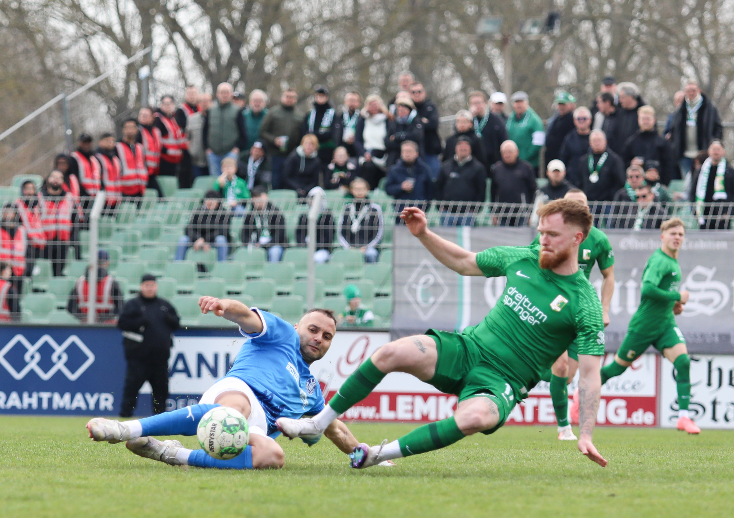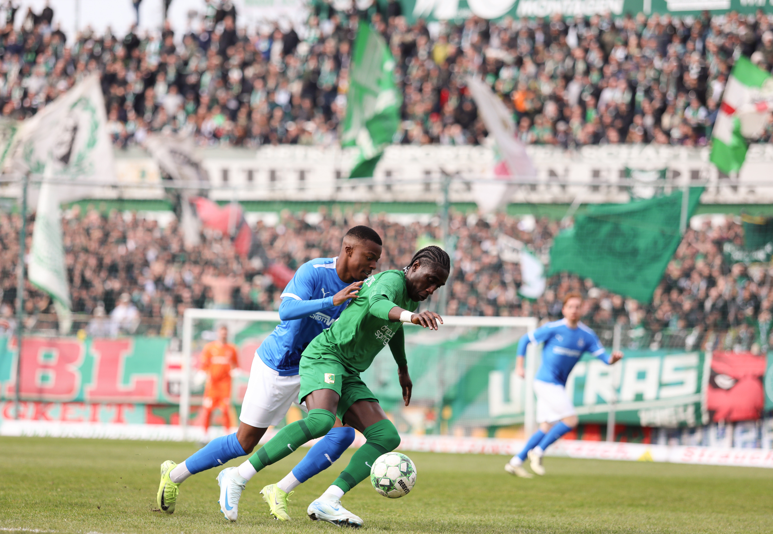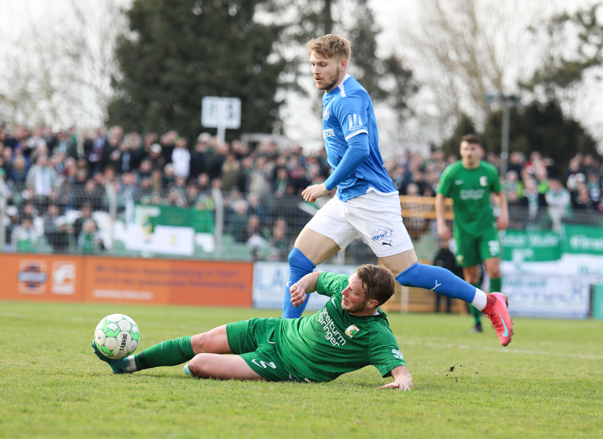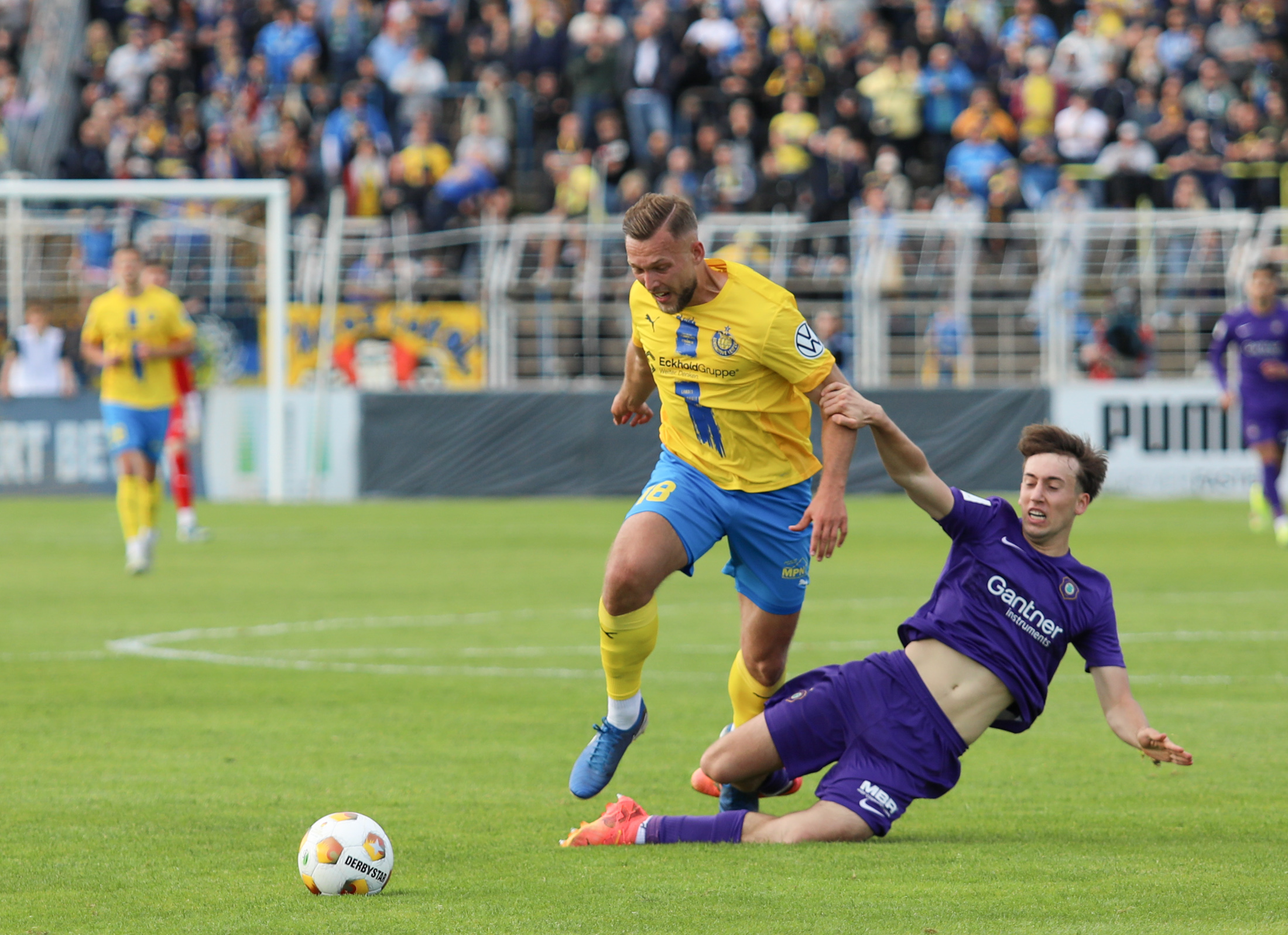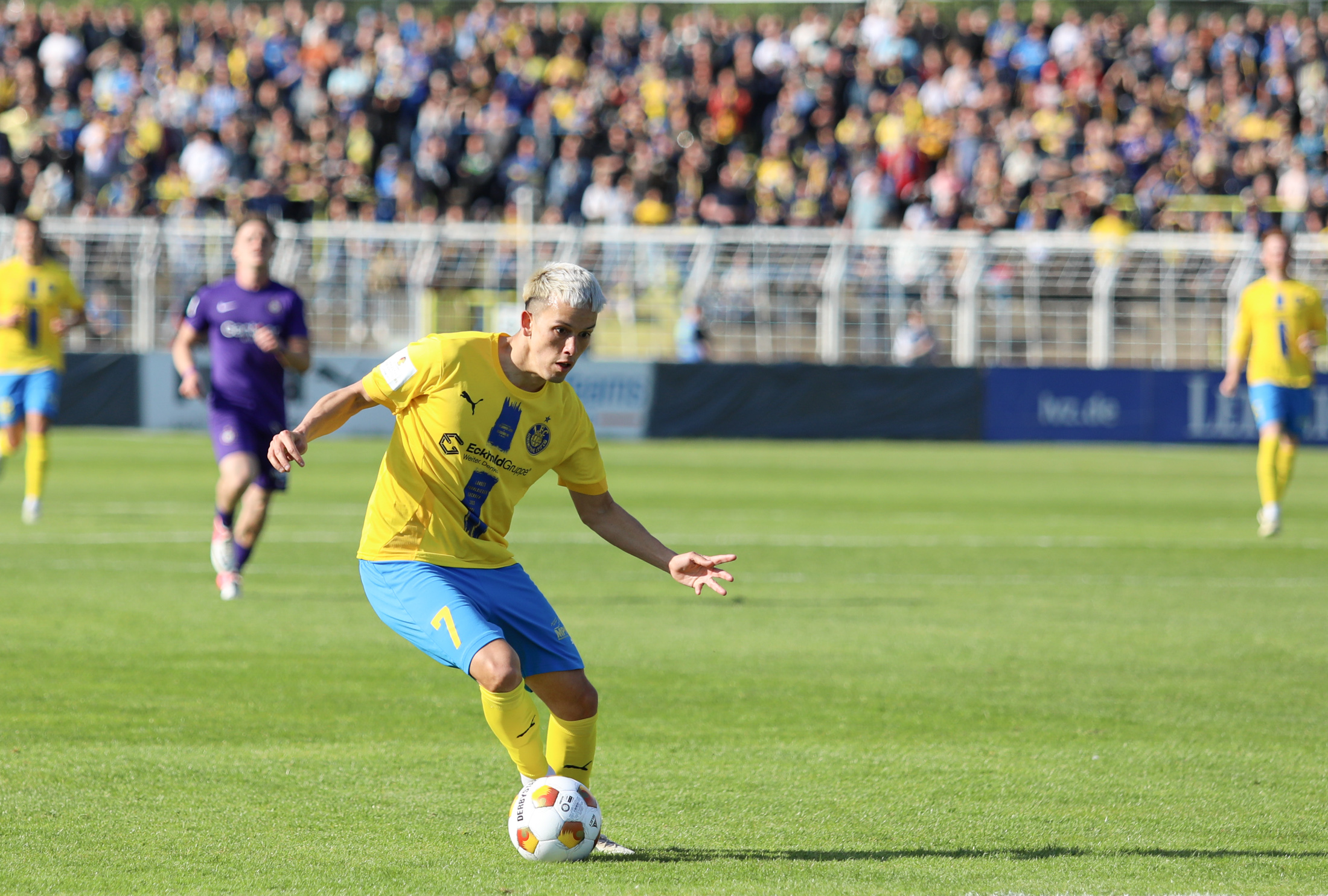 Und auch der FC Erzgebirge Aue wurde seiner Favoritenrolle gerecht. Mit 2:0 feierte der Drittligist einen verdienten Bezirksderby-Sieg vor einer beeindruckenden Kulisse mit knapp 15.000 Zuschauern im Stadion an der Gellertstraße. Besonders in der ersten Hälfte hatte die Mannschaft von Jens Härtel die Himmelblauen im Griff und netzte durch Schmid (26') und Majetschak (29') doppelt. Im zweiten Durchgang investierte der CFC mehr, hatte auch ein paar Abschlüsse und einmal rettete die Latte für den geschlagenen Männel, insgesamt brachte der CFC die Lila-Weißen nur selten in Verlegenheit.