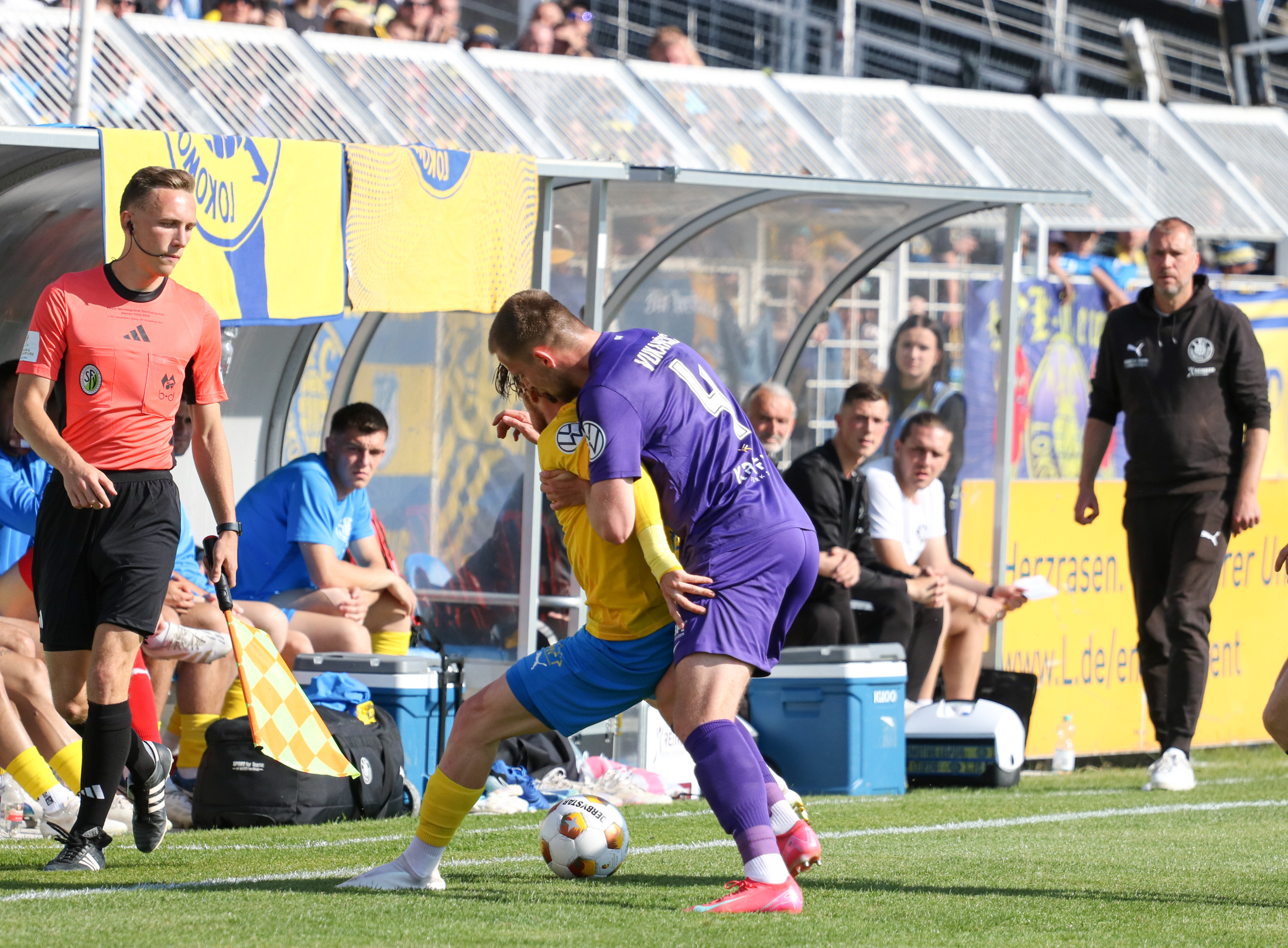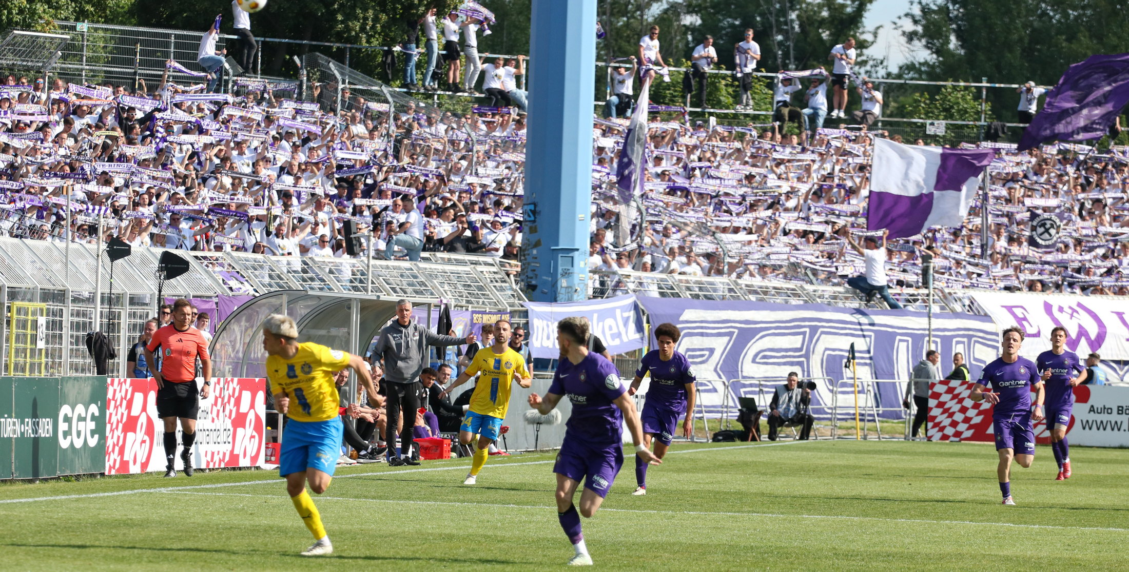 Der FC Erzgebirge Aue gewinnt in Glauchau vor rund 3.400 Zuschauern mit 3:0 und steht nach dem verpassten Titel 2024 gleich wieder im Finale. Ein wichtiger Sieg für die Veilchen im Hinblick auf die nächsten Aufgaben. Der VfB kam eigentlich gut ins Spiel, wäre fast in Führung gegangen, hat dann aber in den entscheidenden Momenten Fehler gemacht. Der Drittligist bestrafte das eiskalt. Mit der Roten Karte für Empor nach einer Notbremse waren die Aussichten schon zur Pause miserabel. Das 0:3 am Ende ein achtsames Ergebnis für der Sachsenliga-Primus.