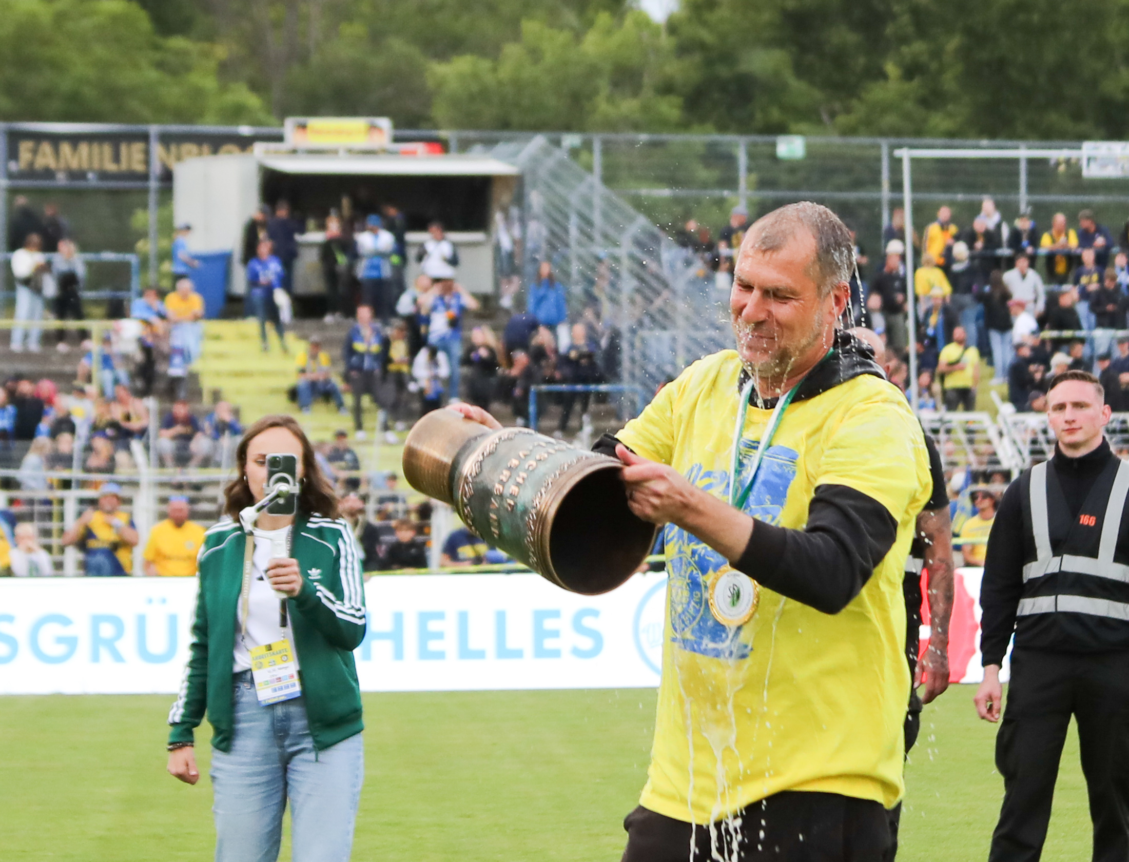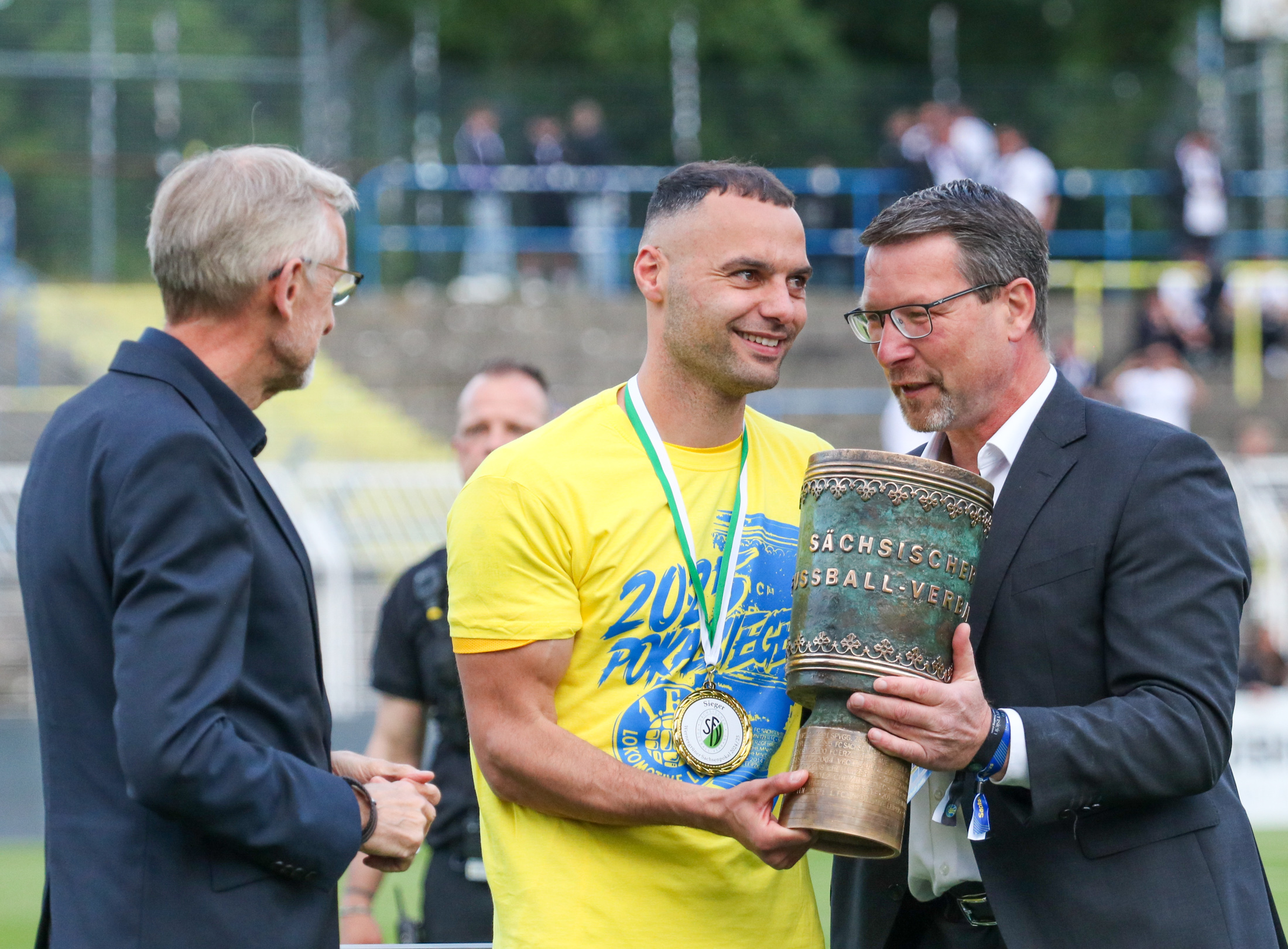 Die mehr als 12.000 Zuschauer im Bruno-Plache-Stadion haben am Samstag das erwartete ausgeglichene, intensive 35. Endspiel um den Wernesgrüner Sachsenpokal gesehen, das zwar kein fußballerischer Leckerbissen war, dafür aber nervenzerreißend bis zum letzten Elfmeter. Vorher hatte Müller den sechsten Elfmeter von Aues Hoffmann pariert und so die Tür ganz weit aufgemacht. Adrian Kireski behielt die Nerven und vollendete zum 6:5-Sieg.