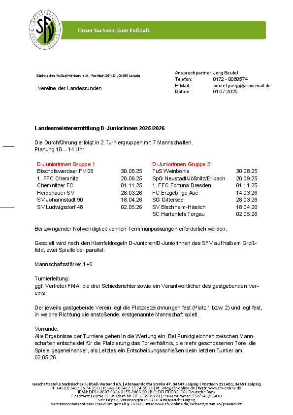 Alle Neuigkeiten, Änderungen und Termine des sächsischen Fußballverbandes für Sie auf einen Blick!