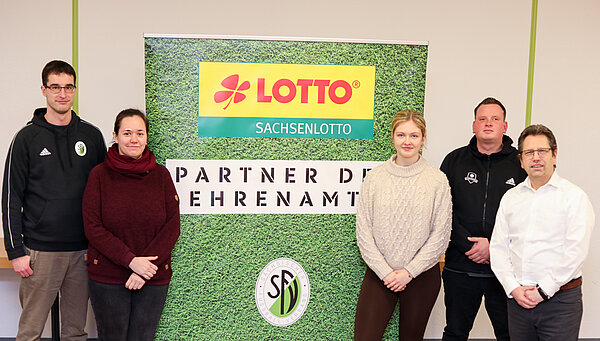 Bei der Scheckübergabe im Vorfeld des Bundesligaspiels zwischen RasenBallsport Leipzig gab es ein gemeinsames Foto mit Petra Köpping (3.v.l.) und SFV-Präsident Hermann Winkler. Für dem VfB Auerbach nahmen Michael Stöhr-Gäbler (Vorstand) und Ronny Kadelke (Präsident) den Scheck in Empfang und vom DFC Westsachsen Zwickau waren Jürgen Zeug (Vorsitzender), Kristin Richter (Spielerin 1. Mannschaft DFC) und Nils Hampel (stellv. Vorsitzender) zu Gast am Cottaweg. © SFV Im Rahmen der Bundesligapartie zwischen RB Leipzig und dem 1. FC Köln, bei der die Messestädterinnen mit einem 2:1-Erfolg wichtige Punkte holten, wurden die letzten Schecks an die Vereine überreicht,…