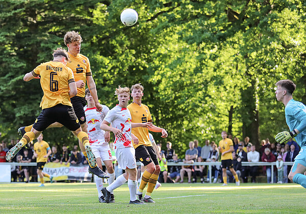 Vor 1.500 Zuschauern gewinnt die SG Dynamo Dresden das Endspiel um den AOK PLUS Landespokal der A-Junioren deutlich mit 4:1 gegen RasenBallsport Leipzig.
