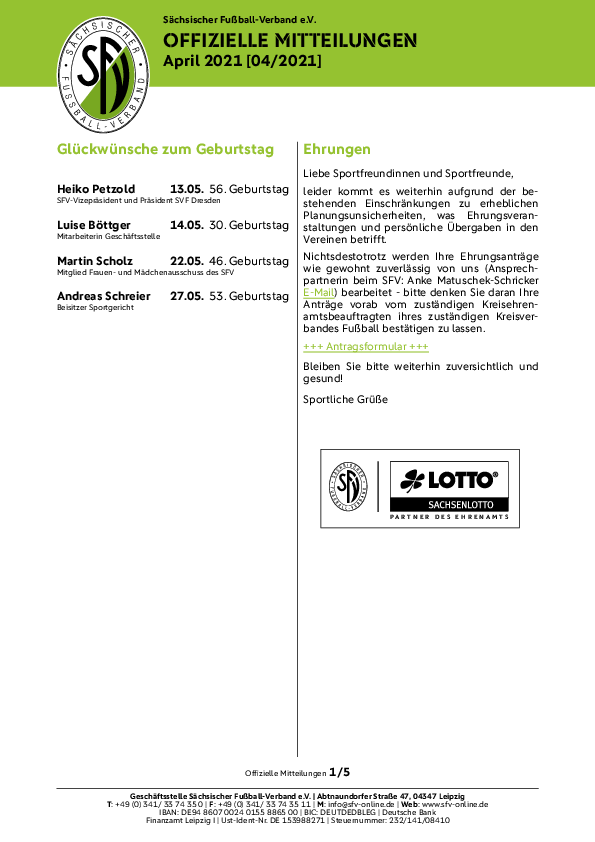 Der Sächsische Fußball-Verband sucht ab sofort für den Bereich Schiedsrichterwesen und den Bereich Soziales/Ehrenamt zwei neue Mitarbeiter (m/w/d). Alle Informationen mit Bewerbungsfristen und den…